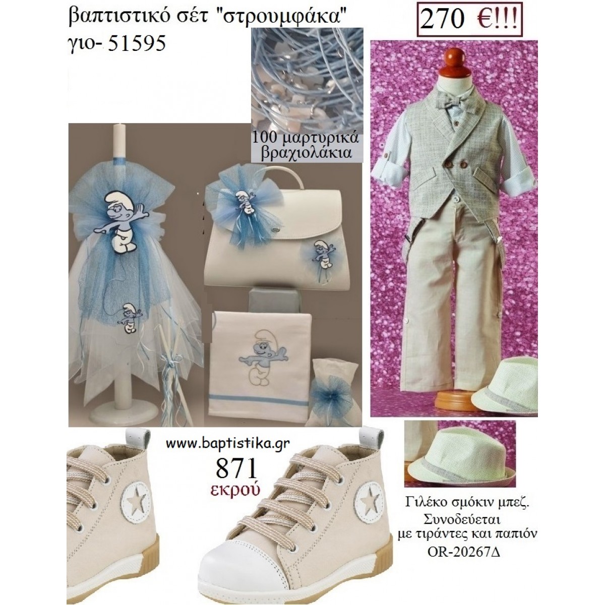 ΣΤΡΟΥΜΦΑΚΙΑ πλήρες βαπτιστικό σετ με ΤΣΑΝΤΑ ΓΙΟ-51595 270€!!!