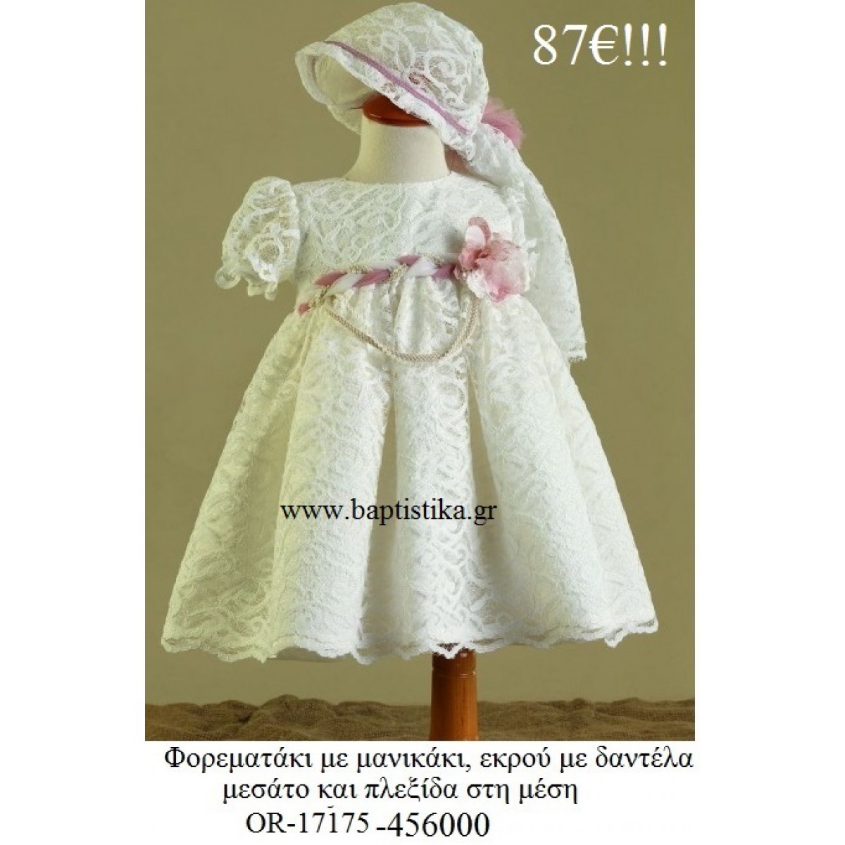 ΦΟΡΕΜΑΤΑΚΙ ΒΑΠΤΙΣΤΙΚΟ ΜΕ ΜΑΝΙΚΙ , ΕΚΡΟΥ ΜΕ ΔΑΝΤΕΛΑ ΜΕΣΑΤΟ ΚΑΙ ΠΛΕΞΙΔΑ OR-17175-456000 87€!!!