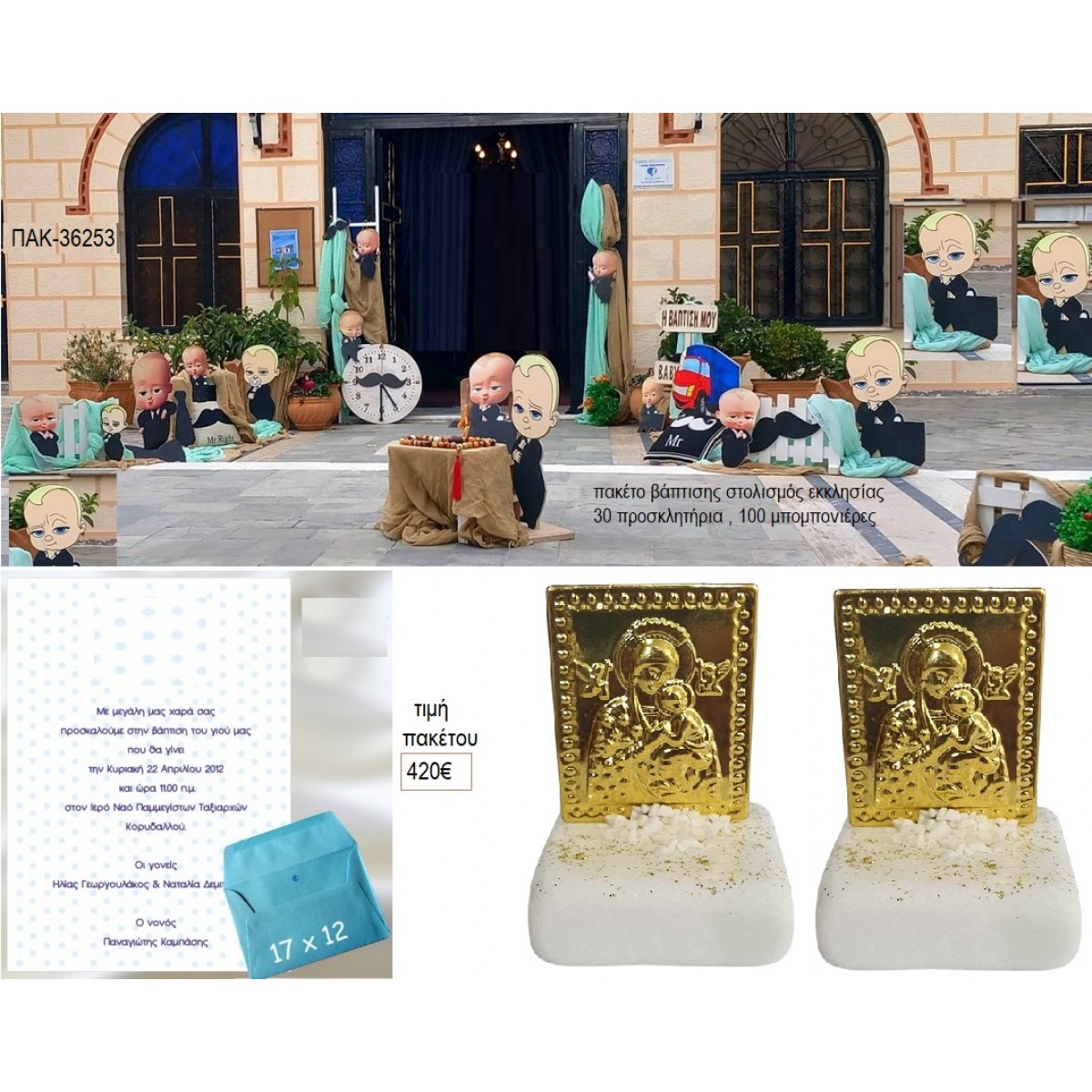 ΑΡΧΗΓΟΣ ΑΠΟ ΚΟΥΝΙΑ BABY BOSS ΠΑΚΕΤΟ ΒΑΠΤΙΣΗΣ στολισμός εκκλησίας 30 προσκλητήρια και 100 μπομπονιέρες βότσαλο ΠΑΚ-36253 420.00€!!!