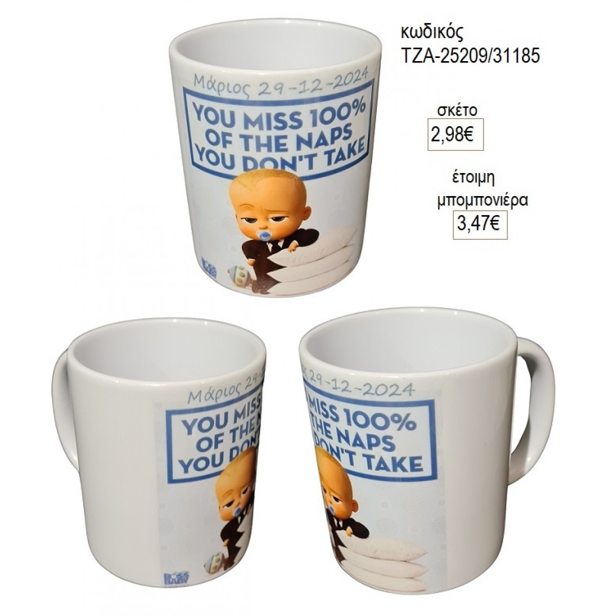 Μπορείτε να το ζητήσετε ως έτοιμη μπομπονιέρα με άριστο δέσιμο με κρυσταλιζέ τούλι 24χ24εκ.και 5 κουφέτα αμυγδάλου ή 5 κουφέτα πικολίνο (σοκολάτας) ή 15 σμάρτυς και 2 κορδέλες σατέν 0.03εκ.συνεργάτες της.
