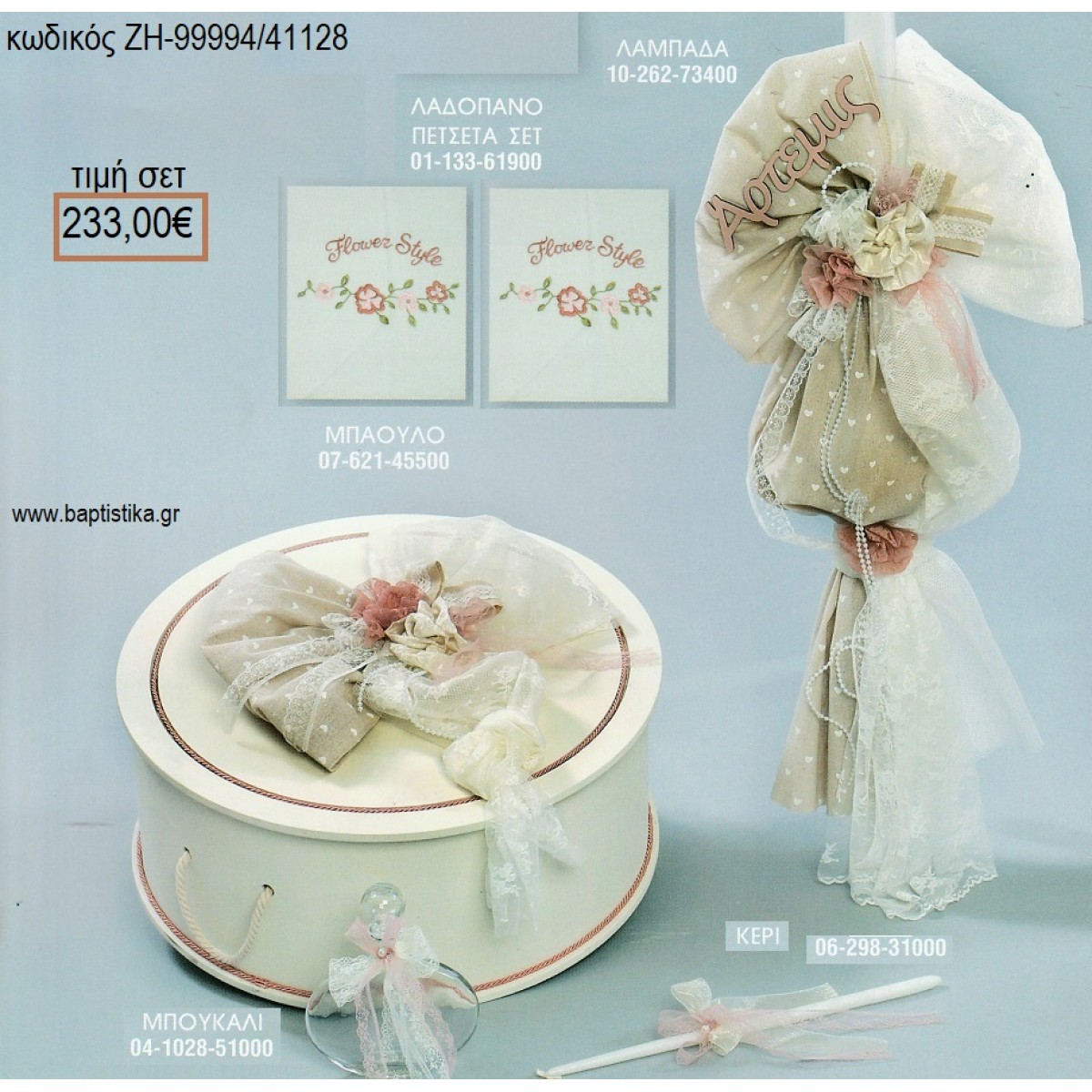 VINTAGE ΛΟΥΛΟΥΔΙΑ βαπτιστικό σετ με ΞΥΛΙΝΟ ΚΟΥΤΙ ΕΠΙΠΛΟ ΖΗ-99994/41128 233.00€!!!