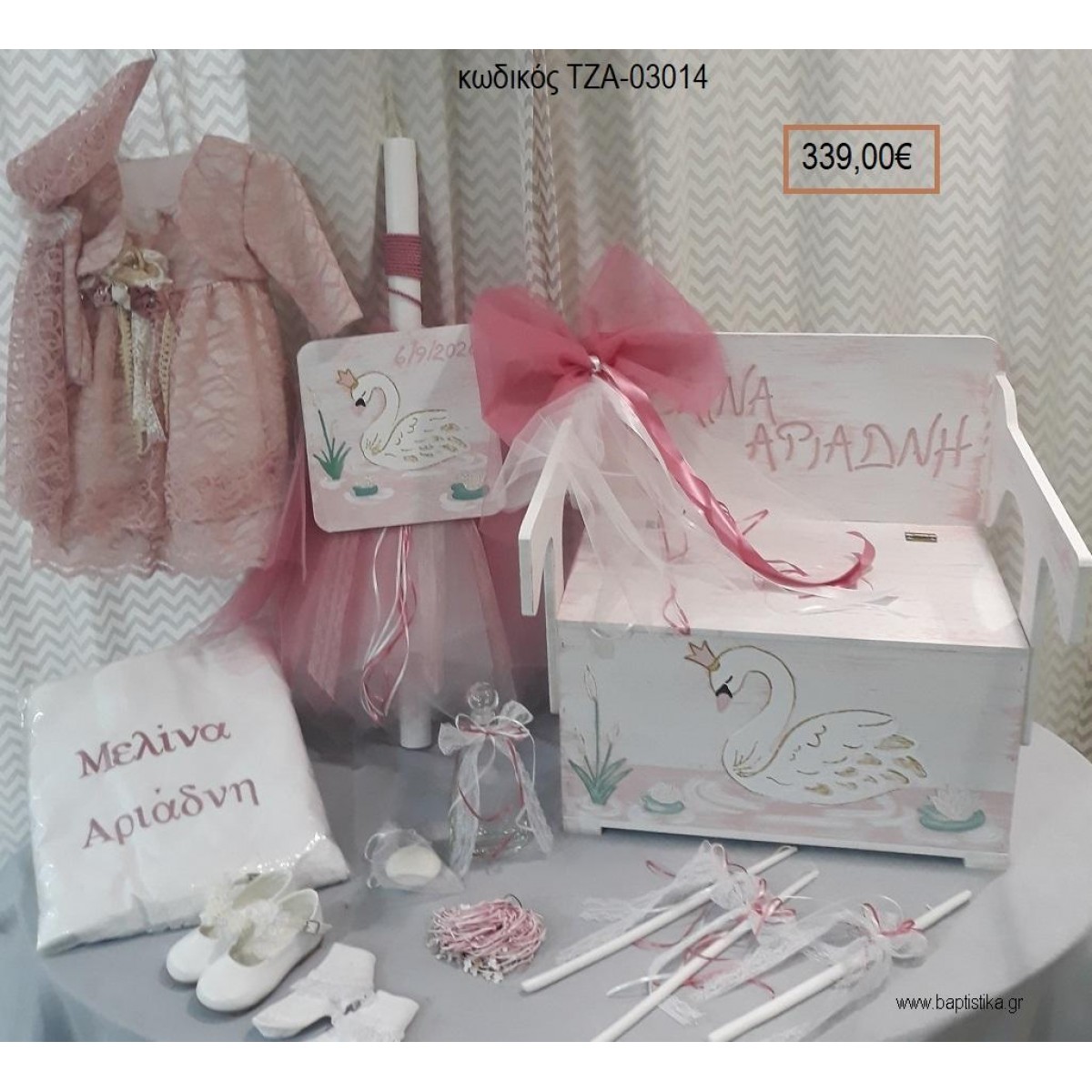 ΚΥΚΝΟΙ πλήρες βαπτιστικό σετ με ΠΑΓΚΑΚΙ ΠΟΥ ΓΙΝΕΤΑΙ ΘΡΑΝΙΟ ΤΖΑ-03014 339.00€!!!