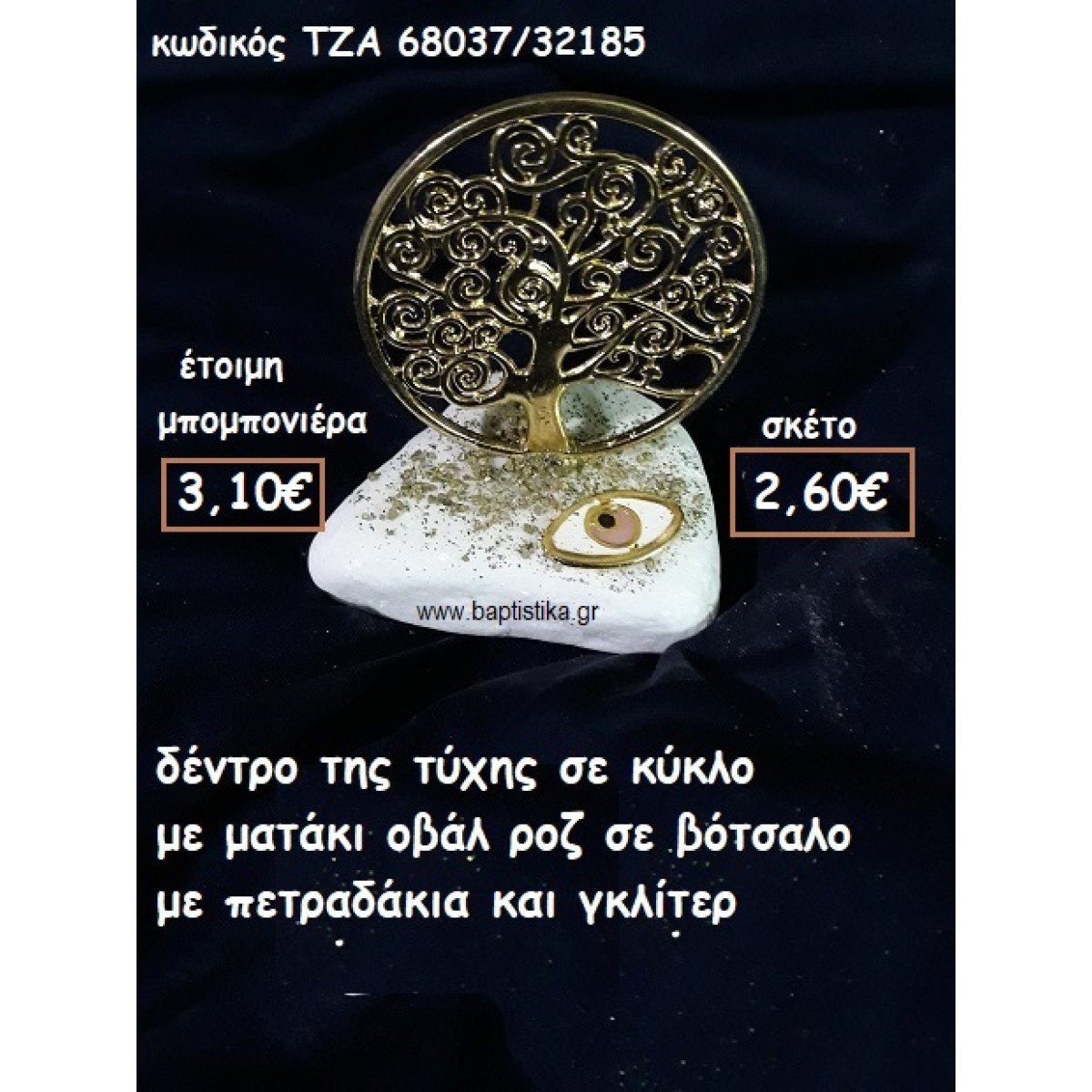 ΔΕΝΤΡΟ ΤΥΧΗΣ ΣΕ ΚΥΚΛΟ ΜΕ ΟΒΑΛ ΜΑΤΑΚΙ ΡΟΖ ΣΕ ΒΟΤΣΑΛΟ ΓΙΑ ΜΠΟΜΠΟΝΙΕΡΕΣ ΓΑΜΟΥ-ΒΑΠΤΙΣΗΣ ΤΖΑ 68037/32185