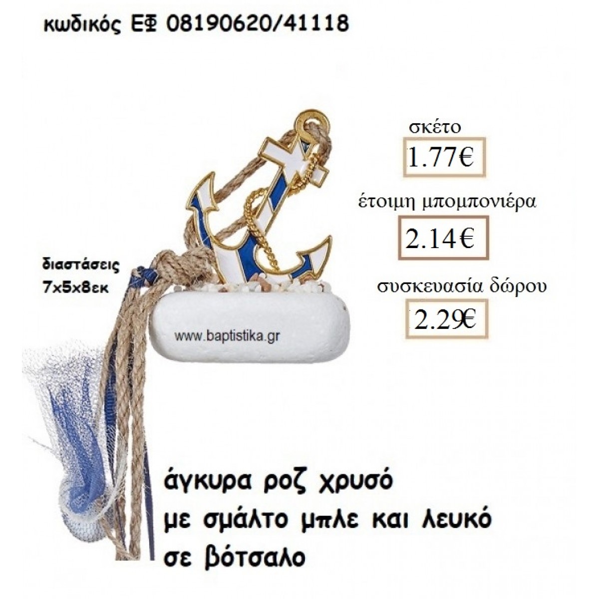 ΑΓΚΥΡΑ ΕΠΙΧΡΥΣΗ ΜΕ ΣΜΑΛΤΟ ΜΠΛΕ ΚΑΙ ΛΕΥΚΟ ΣΕ ΒΟΤΣΑΛΟ ΓΙΑ ΜΠΟΜΠΟΝΙΕΡΕΣ ΓΑΜΟΥ - ΒΑΠΤΙΣΗΣ ΕΦ 08190620/41118 1.77€