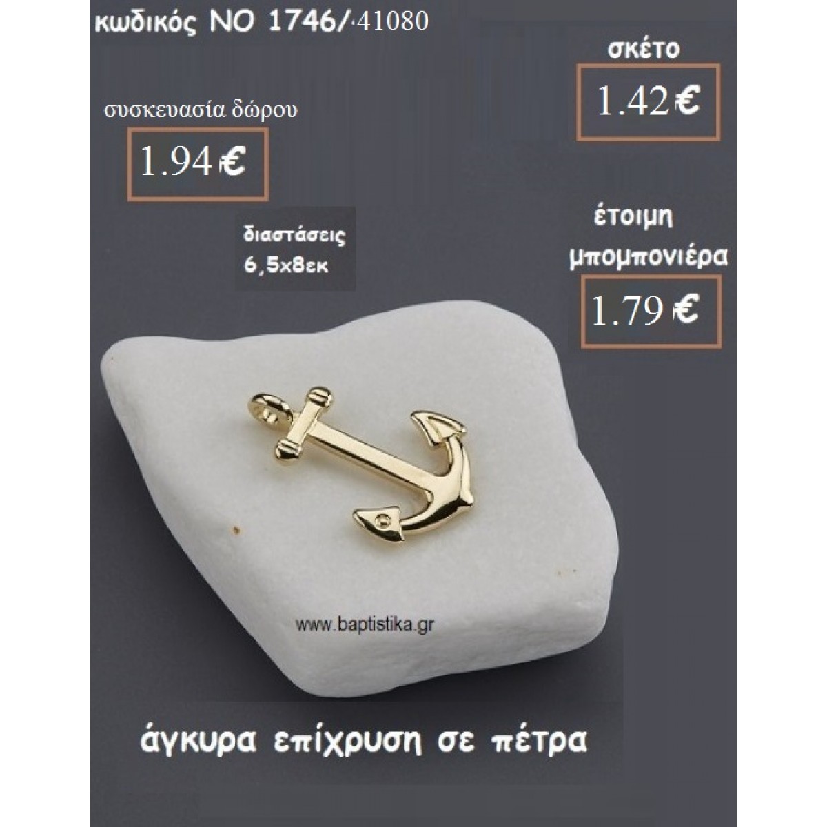 ΑΓΚΥΡΑ ΕΠΙΧΡΥΣΗ ΠΑΝΩ ΣΕ ΠΕΤΡΑ ΓΙΑ ΜΠΟΜΠΟΝΙΕΡΕΣ ΒΑΠΤΙΣΗΣ ΝΟ 1746/41080 1.42€