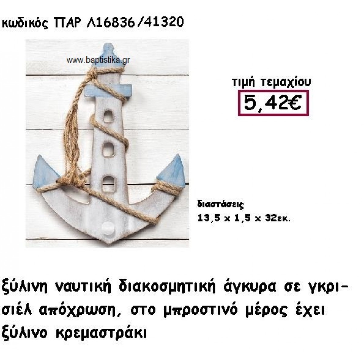 ΑΓΚΥΡΑ ΞΥΛΙΝΗ ΚΡΕΜΑΣΤΡΑ ΣΕ ΓΚΡΙ-ΣΙΕΛ ΧΡΩΜΑ ΓΙΑ ΔΙΑΚΟΣΜΗΣΗ ΓΑΜΟΥ-ΒΑΠΤΙΣΗΣ ΠΑΡ-Λ16836