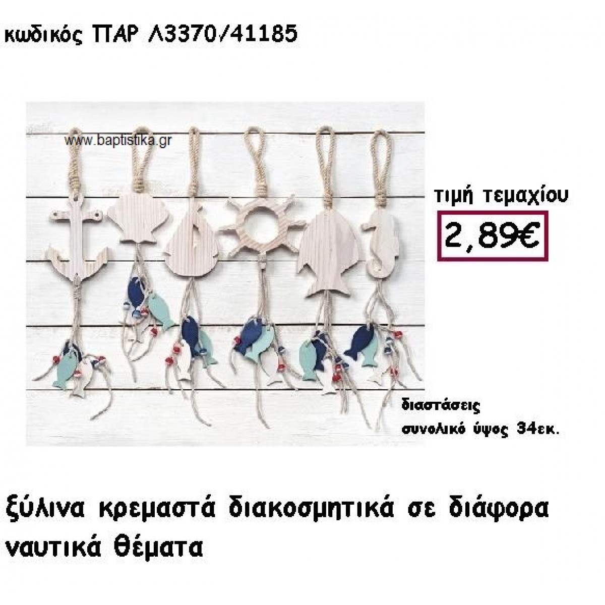 ΘΑΛΑΣΣΙΝΑ ΞΥΛΙΝΑ ΚΡΕΜΑΣΤΑ ΓΙΑ ΔΙΑΚΟΣΜΗΣΗ ΓΑΜΟΥ-ΒΑΠΤΙΣΗΣ ΠΑΡ-Λ3370