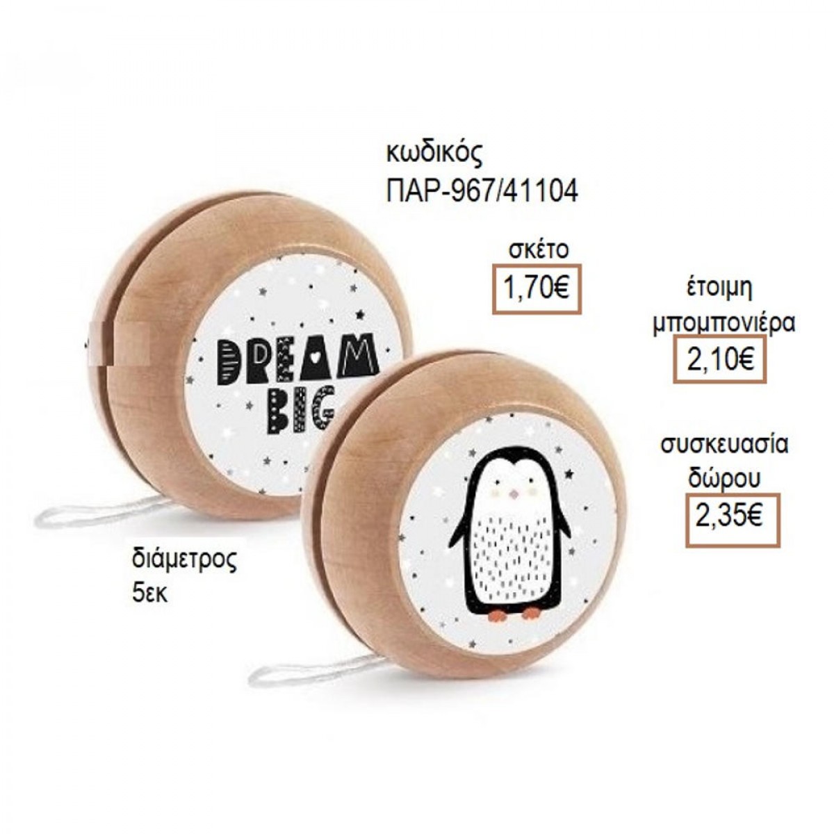 ΠΙΓΚΟΥΙΝΟΣ ΑΥΤΟΚΟΛΛΗΤΟ ΣΕ ΞΥΛΙΝΟ ΓΙΟ ΓΙΟ για μπομπονιέρες δώρο γούρι ΠΑΡ-Μ967/41104 1.70€!!!