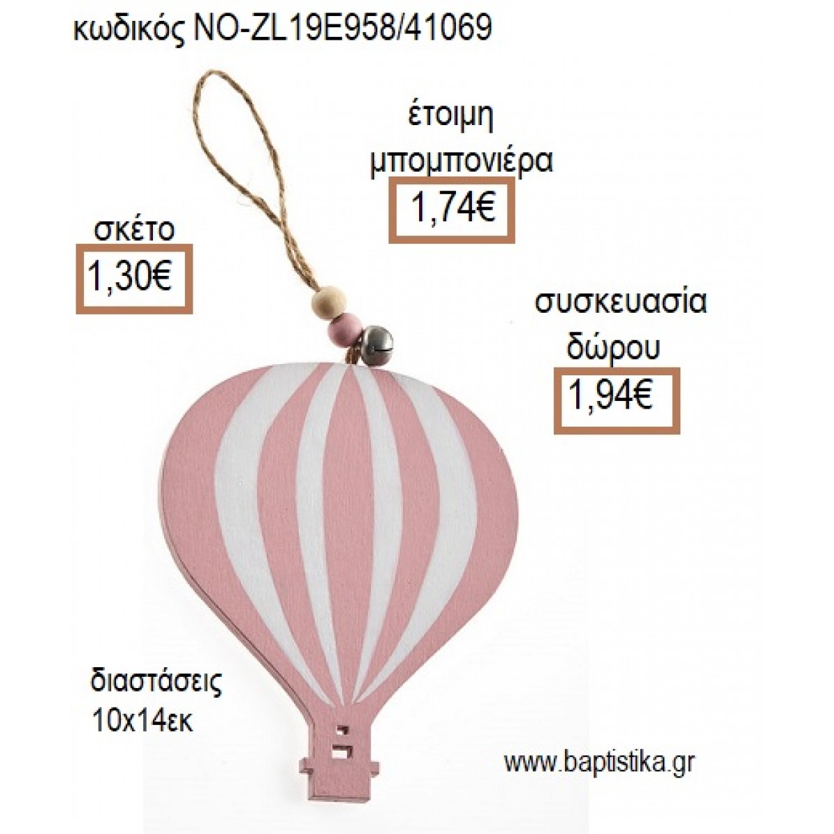 ΑΕΡΟΣΤΑΤΟ ΞΥΛΙΝΟ ΧΡΩΜΑ ΡΟΖ ΚΡΕΜΑΣΤΟ για μπομπονιέρες - δώρα πάρτυ - εορτών - γέννησης - γούρια - φτιάξτο μόνος σου ΝΟ-ZL19E958/41069 1.30€!!!