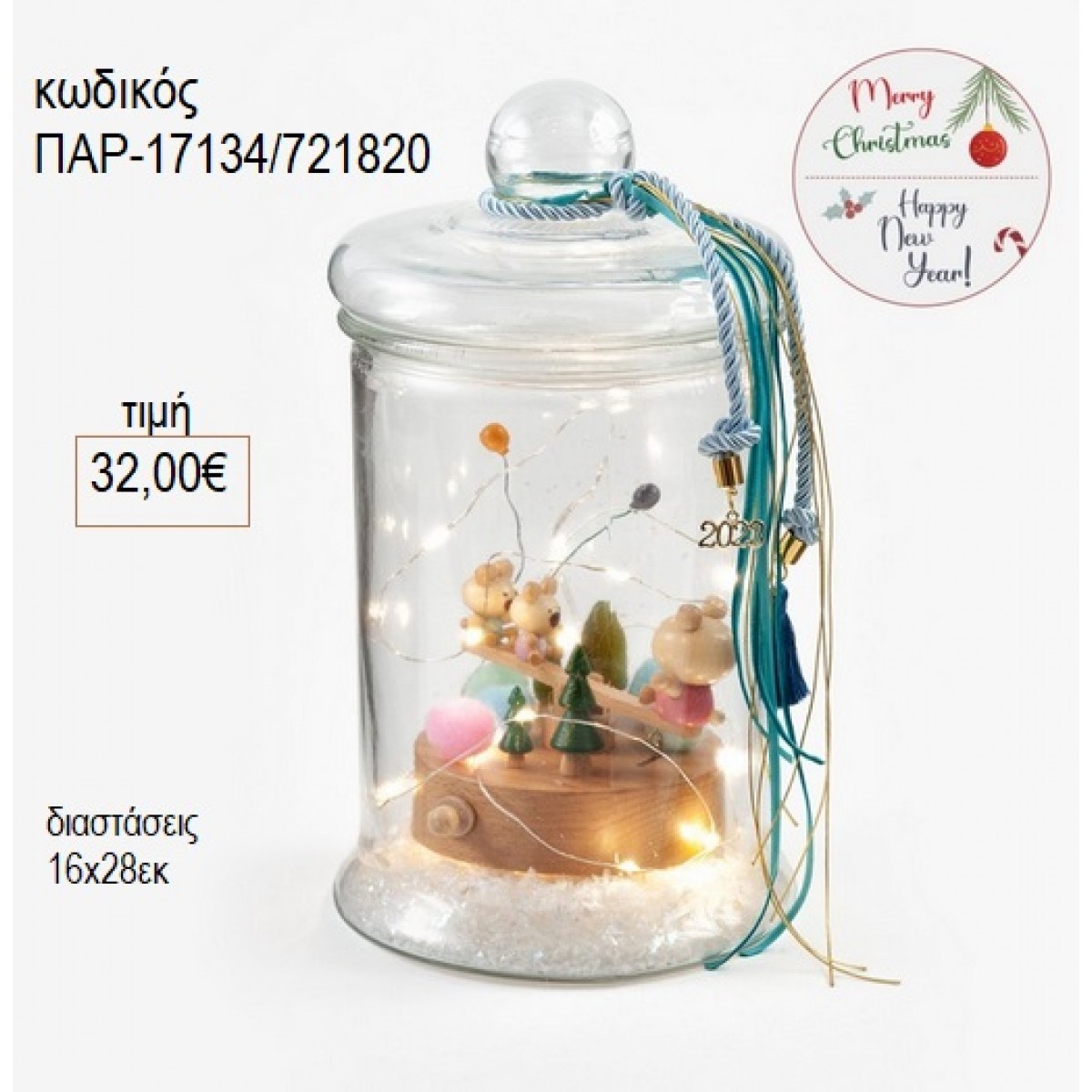 ΜΟΥΣΙΚΟ ΚΟΥΤΙ ΜΕ ΑΡΚΟΥΔΑΚΙΑ ΣΕ ΓΥΑΛΑ ΜΕ ΚΑΠΑΚΙ ΜΕ LED ΦΩΤΙΣΜΟ για γούρι δώρο ΠΑΡ-17134/721820 32.00€!!!