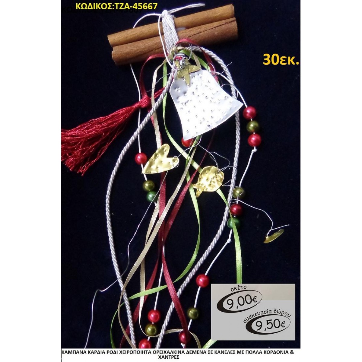 ΚΑΜΠΑΝΑ ΡΟΔΙ ΚΑΡΔΙΑ ΧΕΙΡΟΠΟΙΗΤΟ ΟΡΕΙΧΑΛΚΙΝΟ ΔΕΜΕΝΟ ΣΕ ΚΑΝΕΛΕΣ ΜΕ ΠΟΛΛΕΣ ΚΟΡΔΕΛΕΣ οικονομικα φθηνα γουρι ΤΖΑ 45667