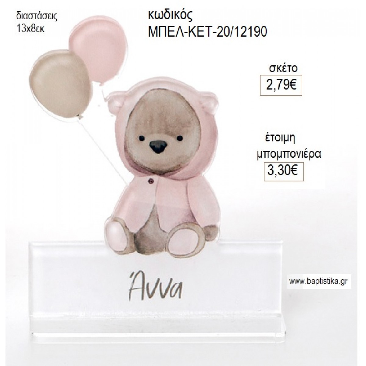 ΑΡΚΟΥΔΑΚΙ ΡΟΖ ΤΥΠΩΜΑ ΣΕ PLEXIGLASS ΜΕ ΟΝΟΜΑ για μπομπονιέρες γούρι δώρο ΜΠΕΛ-ΚΕΤ-20/12190 2.79€!!!!