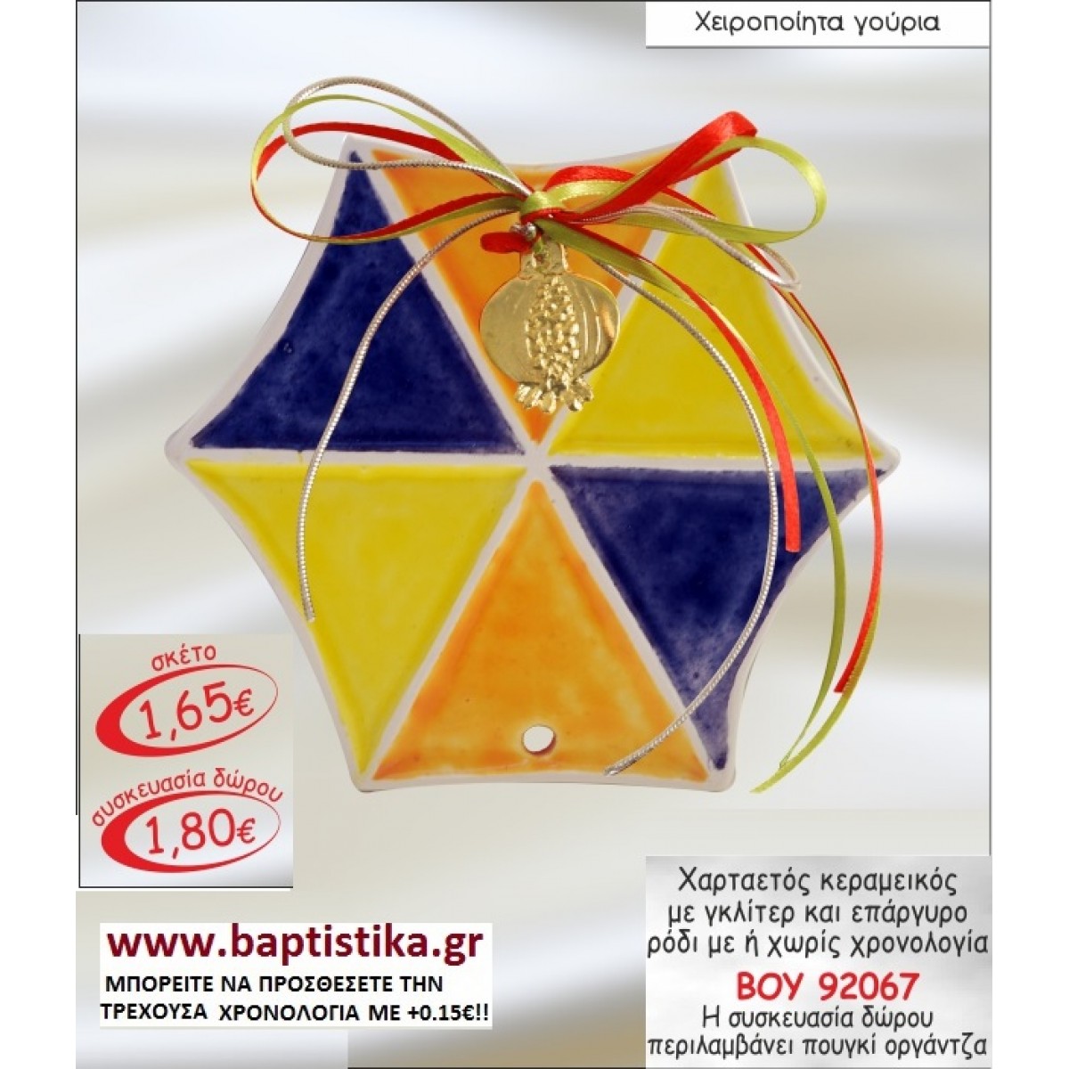 ΧΑΡΤΑΕΤΟΣ ΚΕΡΑΜΙΚΟ ΜΕ ΓΚΛΙΤΕΡ ΕΠΑΡΓΥΡΟ ΡΟΔΙ ΜΕ Η ΧΩΡΙΣ ΧΡΟΝΟΛΟΓΙΑ ΓΟΥΡΙ ΒΟΥ 92067