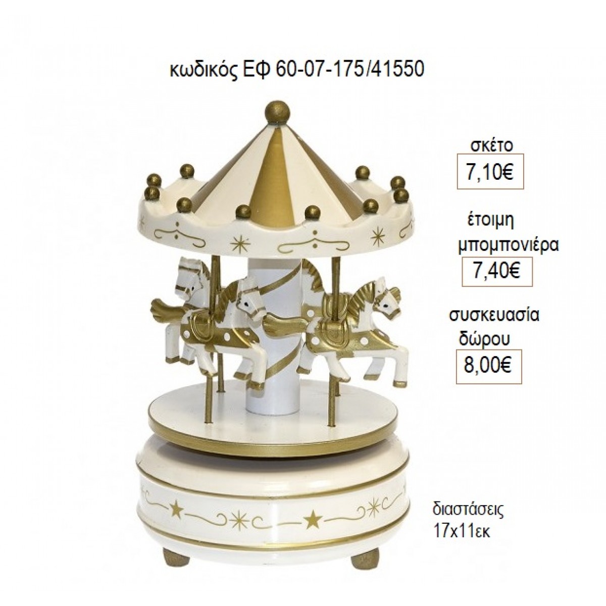 ΚΑΡΟΥΖΕΛ CAROUSEL ΞΥΛΙΝΟ ΧΡΩΜΑ ΜΠΕΖ ΜΕ ΜΟΥΣΙΚΗ για μπομπονιέρες δώρο γούρι ΕΦ 60-07-175/41550 7.10€!!!