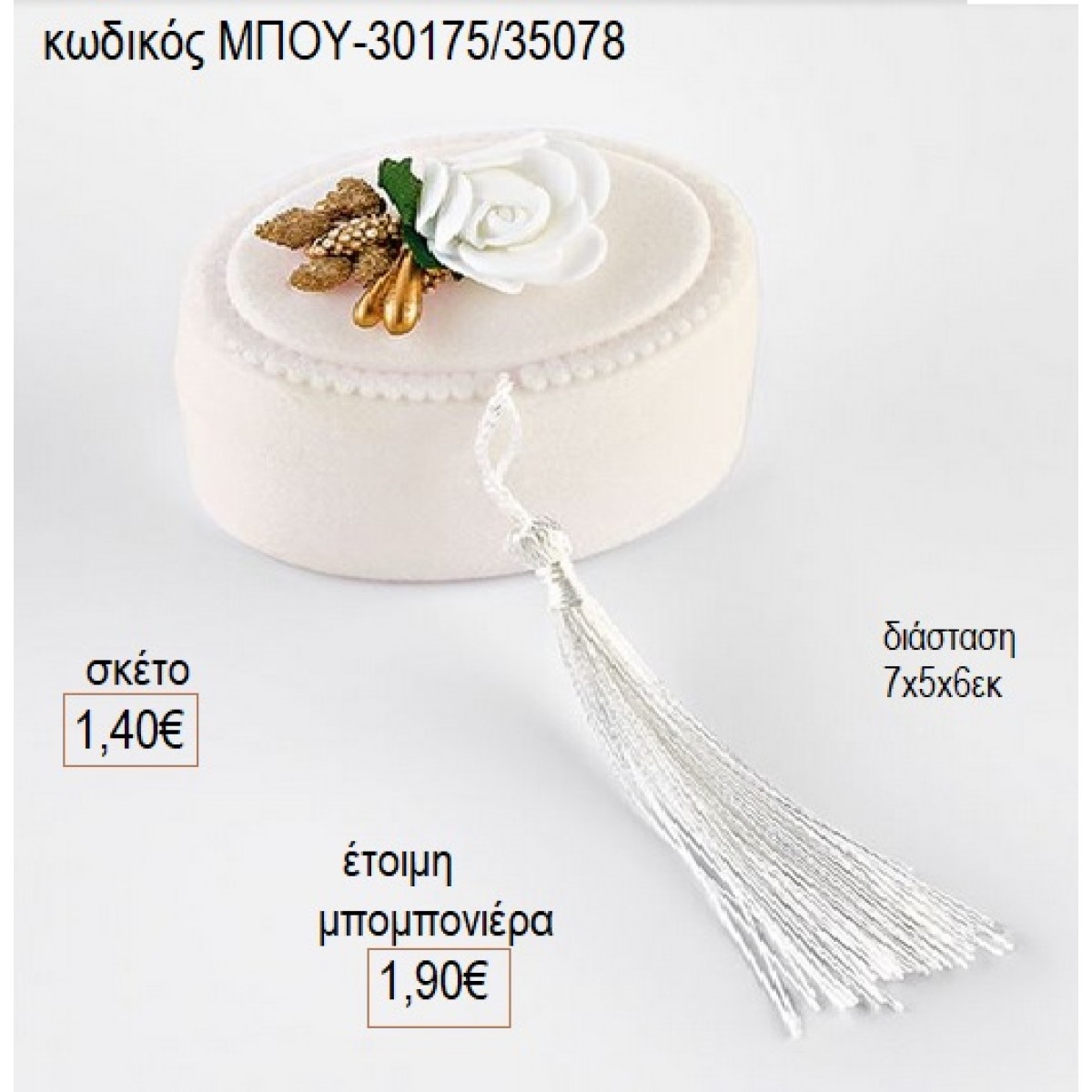 ΜΠΙΖΟΥΤΙΕΡΑ ΠΟΛΥΕΣΤΕΡΙΚΗ ΛΕΥΚΗ ΜΕ ΒΕΛΟΥΔΟ για μπομπονιέρες γούρι δώρο ΜΠΟΥ-30175/35078 1.40€!!!