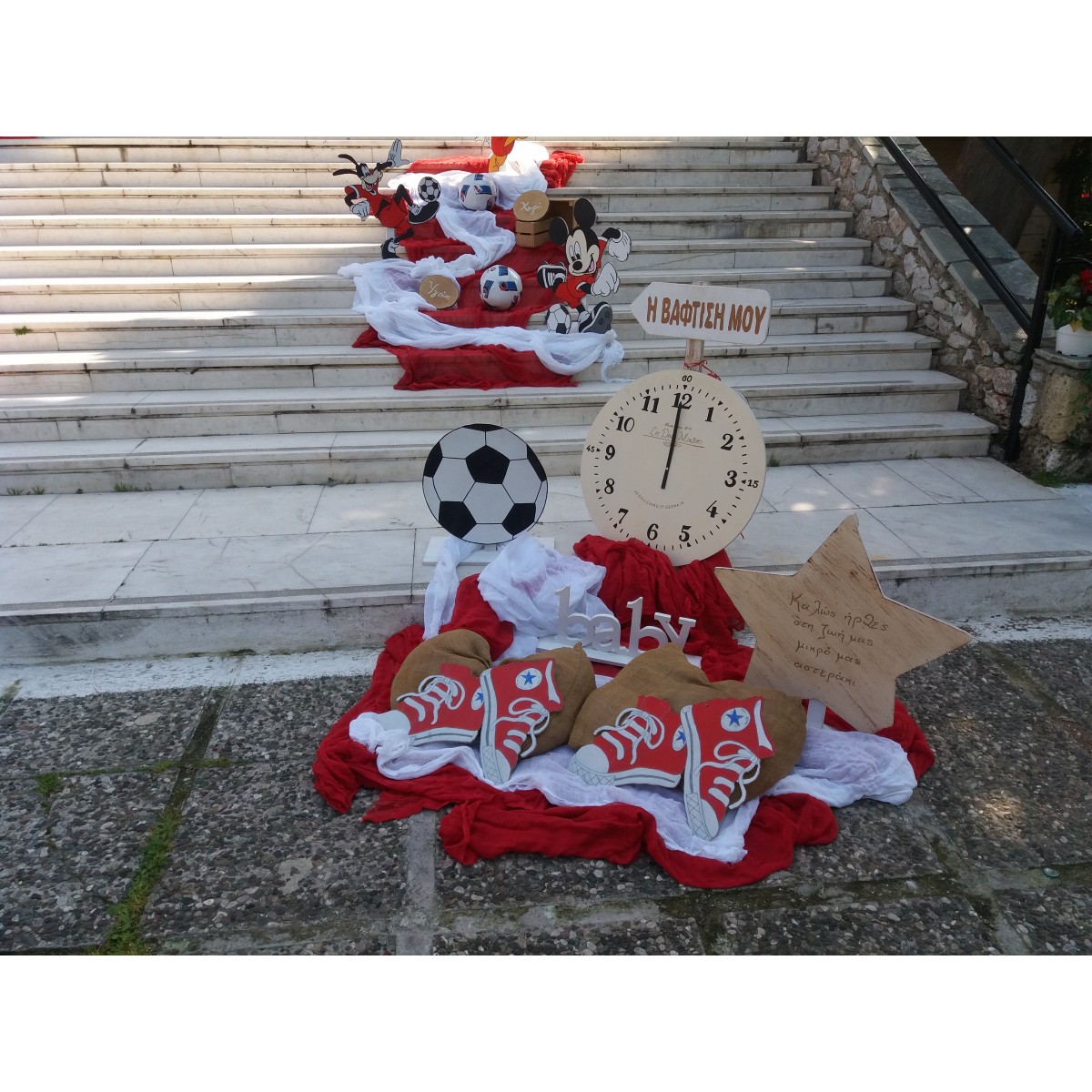 Στην τιμή περιλαμβάνεται ο στολισμός κολυμπήθρας και τραπεζιού μπομπονιέρων και ευχών(αν υπάρχει βιβλίο).