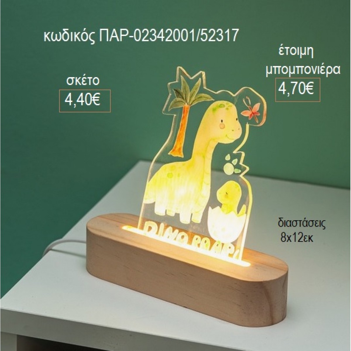 ΔΕΙΝΟΣΑΥΡΟΣ PLEXIGLASS ΚΟΠΤΙΚΟ ΣΕ ΞΥΛΙΝΗ ΟΒΑΛ΄ΒΑΣΗ ΜΕ LED ΦΩΤΙΣΜΟ για μπομπονιέρες γούρι δώρο ΠΑΡ-02342001/52317 4.40€!!!