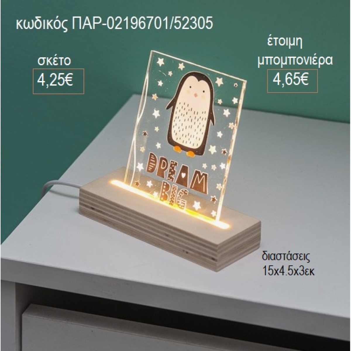 ΠΙΓΚΟΥΙΝΟΣ PLEXIGLASS ΣΕ ΞΥΛΙΝΗ ΒΑΣΗ ΜΕ LED ΦΩΤΙΣΜΟ για μπομπονιέρες γούρι δώρο ΠΑΡ-02196701/52305 4.25€!!!