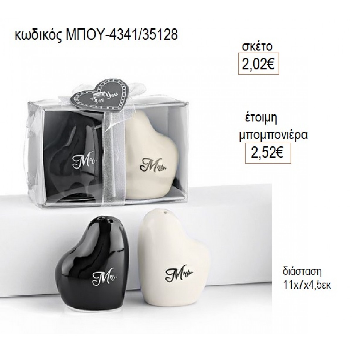 MR & MRS ΚΕΡΑΜΙΚΟ ΑΛΑΤΟΠΙΠΕΡΟ για μπομπονιέρες γούρι δώρο ΜΠΟΥ 4341/35128 2.02€!!!