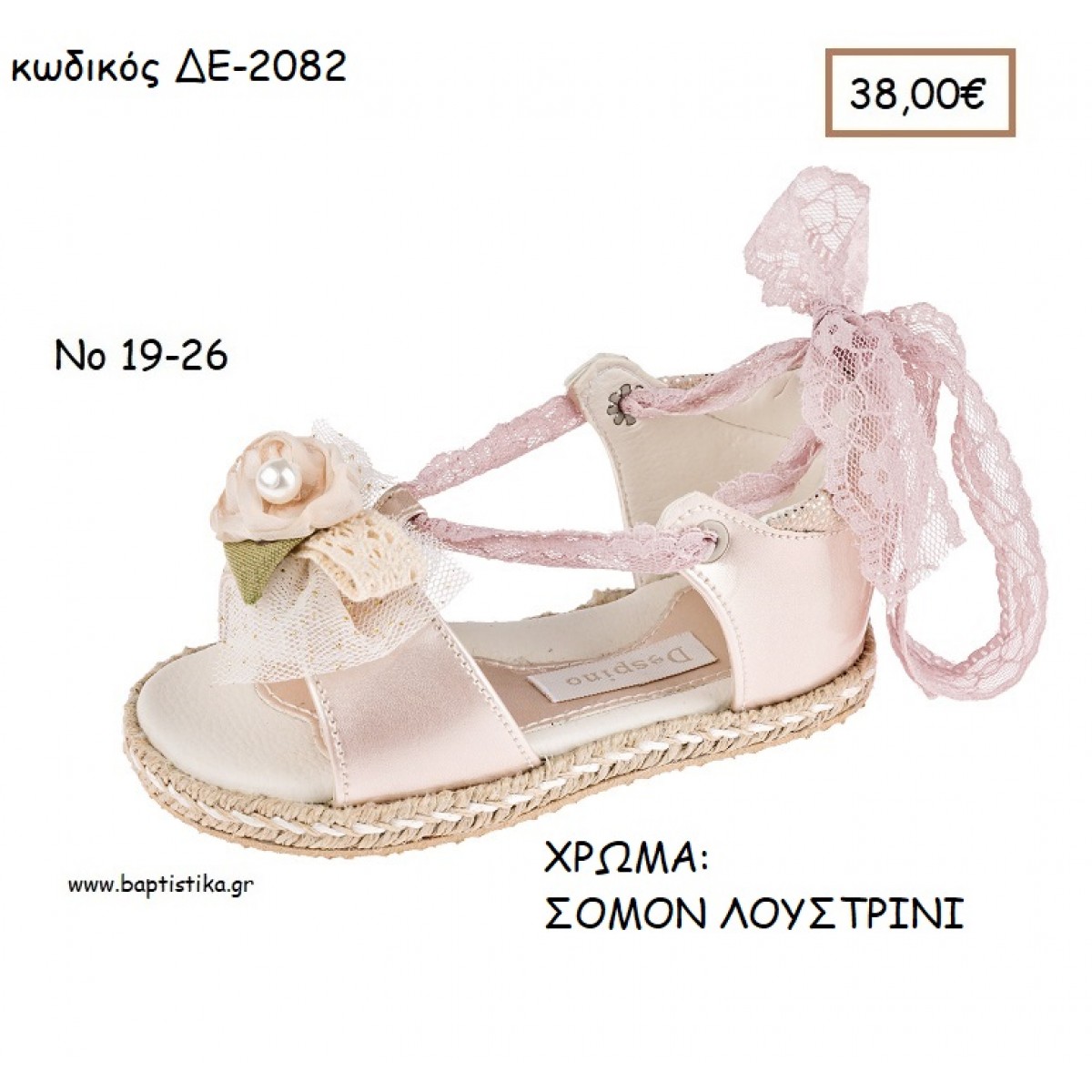 ΠΑΠΟΥΤΣΙΑ ΒΑΠΤΙΣΗΣ ΑΝΑΤΟΜΙΚΑ ΔΕΡΜΑΤΙΝΑ ΕΣΠΑΝΤΡΙΓΙΑ ΜΕ ΛΟΥΛΟΥΔΙ ΚΑΙ ΔΑΝΤΕΛΑ ΣΕ ΧΡΩΜΑ ΣΟΜΟΝ ΛΟΥΣΤΡΙΝΙ ΚΩΔ. ΔΕ-2082 38.00€!!!