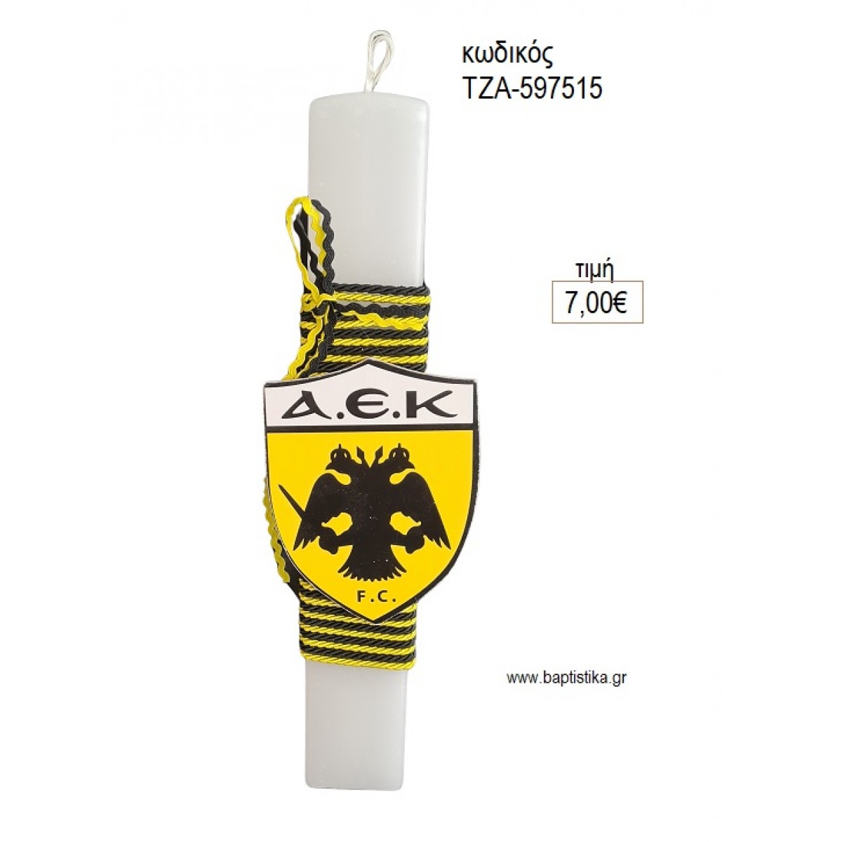 Η λαμπάδα είναι διακοσμημένη με ξύλινο διακοσμητικό.