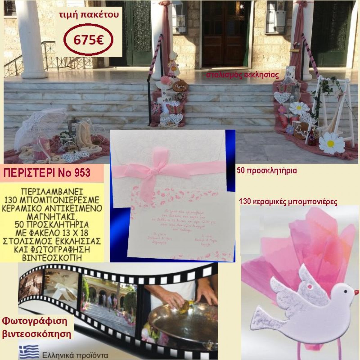 ΠΕΡΙΣΤΕΡΙ ΠΑΚΕΤΟ ΒΑΠΤΙΣΗΣ (130 ΜΠΟΜΠΟΝΙΕΡΕΣ,50 ΠΡΟΣΚΛΗΤΗΡΙΑ,ΦΩΤΟΓΡΑΦΙΣΗ ΚΑΙ ΒΙΝΤΕΟΣΚΟΠΗΣΗ) ΝΟ 953