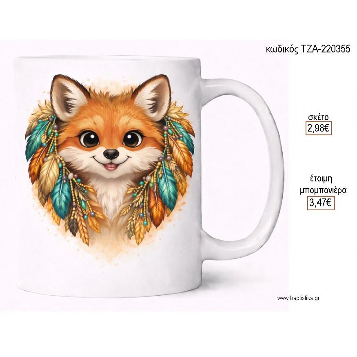 Μπορείτε να επιλέξετε το θέμα της κούπας , καθώς επίσης μπορείτε να προσθέσετε το όνομα του παιδιού και την ημερομηνία βάπτισης.