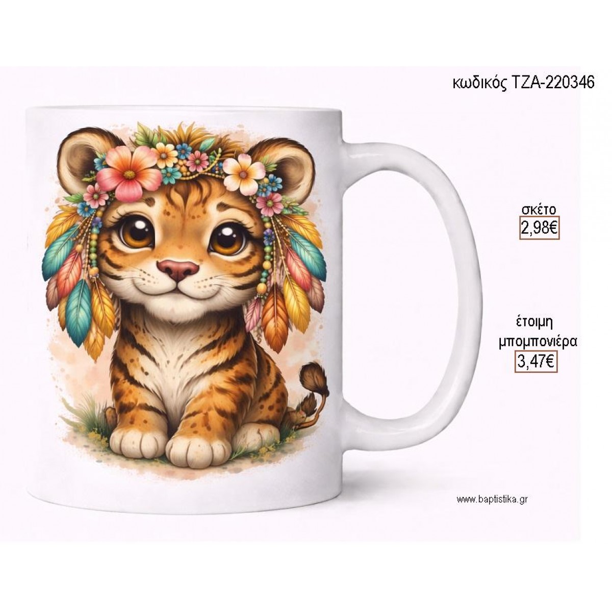 ΤΙΓΡΑΚΙ BOHO ΦΤΕΡΑ ΚΑΙ ΛΟΥΛΟΥΔΙΑ ΚΟΥΠΑ για μπομπονιέρες γούρι δώρο ΤΖΑ-220346 2.98€!!!