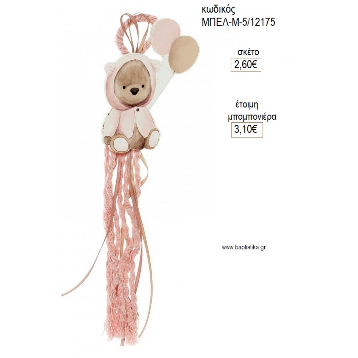 ΑΡΚΟΥΔΑΚΙ ΜΠΑΛΟΝΙΑ ΡΟΖ ΞΥΛΙΝΟ ΣΕ ΚΡΕΜΑΣΤΟ ΔΕΣΙΜΟ για μπομπονιέρες γούρι δώρο ΜΠΕΛ-Μ-5/12175 2.60€!!!
