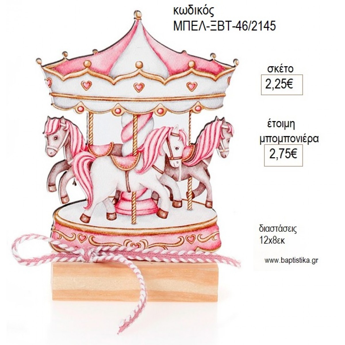 CAROUSEL ΡΟΖ ΞΥΛΙΝΟ ΣΕ ΞΥΛΙΝΗ ΒΑΣΗ για μπομπονιέρες γούρι δώρο ΜΠΕΛ-ΞΒΤ-46/12145 2.25€!!!