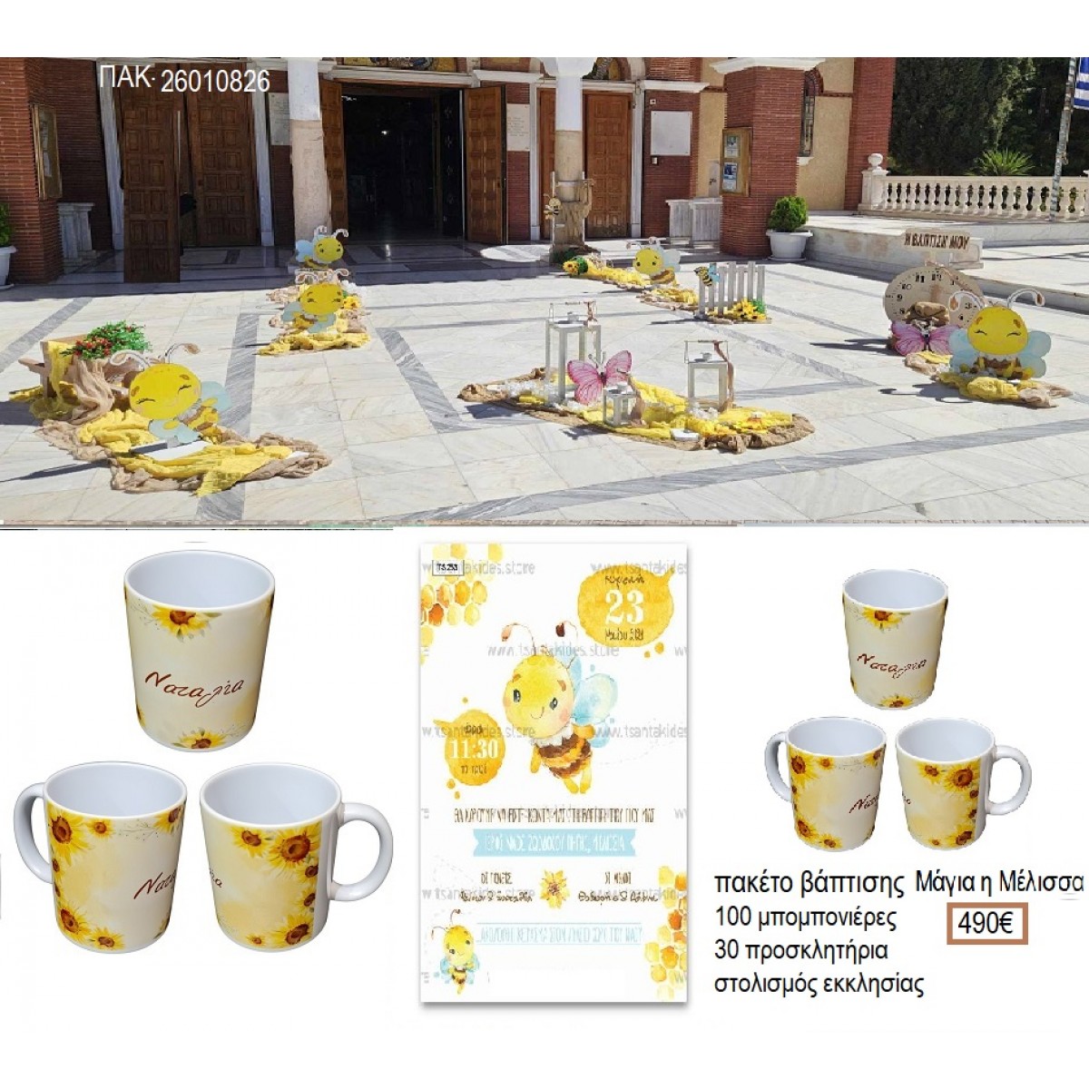ΜΑΓΙΑ Η ΜΕΛΙΣΣΑ πακέτο βάπτισης 100 μπομπονιέρες 30 προσκλητήρια στολισμός εκκλησίας ΠΑΚ-26010826 490.00€!!!
