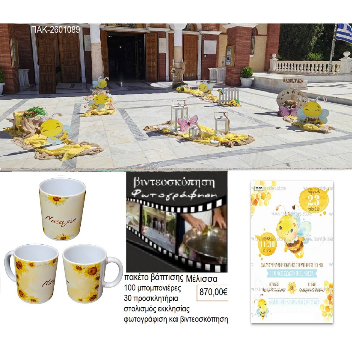 ΜΕΛΙΣΣΕΣ ΠΑΚΕΤΟ ΒΑΠΤΙΣΗΣ στολισμός 100 μπομπονιέρες 30 προσκλητήρια φωτογράφιση βιντεοσκόπηση ΠΑΚ-2601089 870.00€!!!