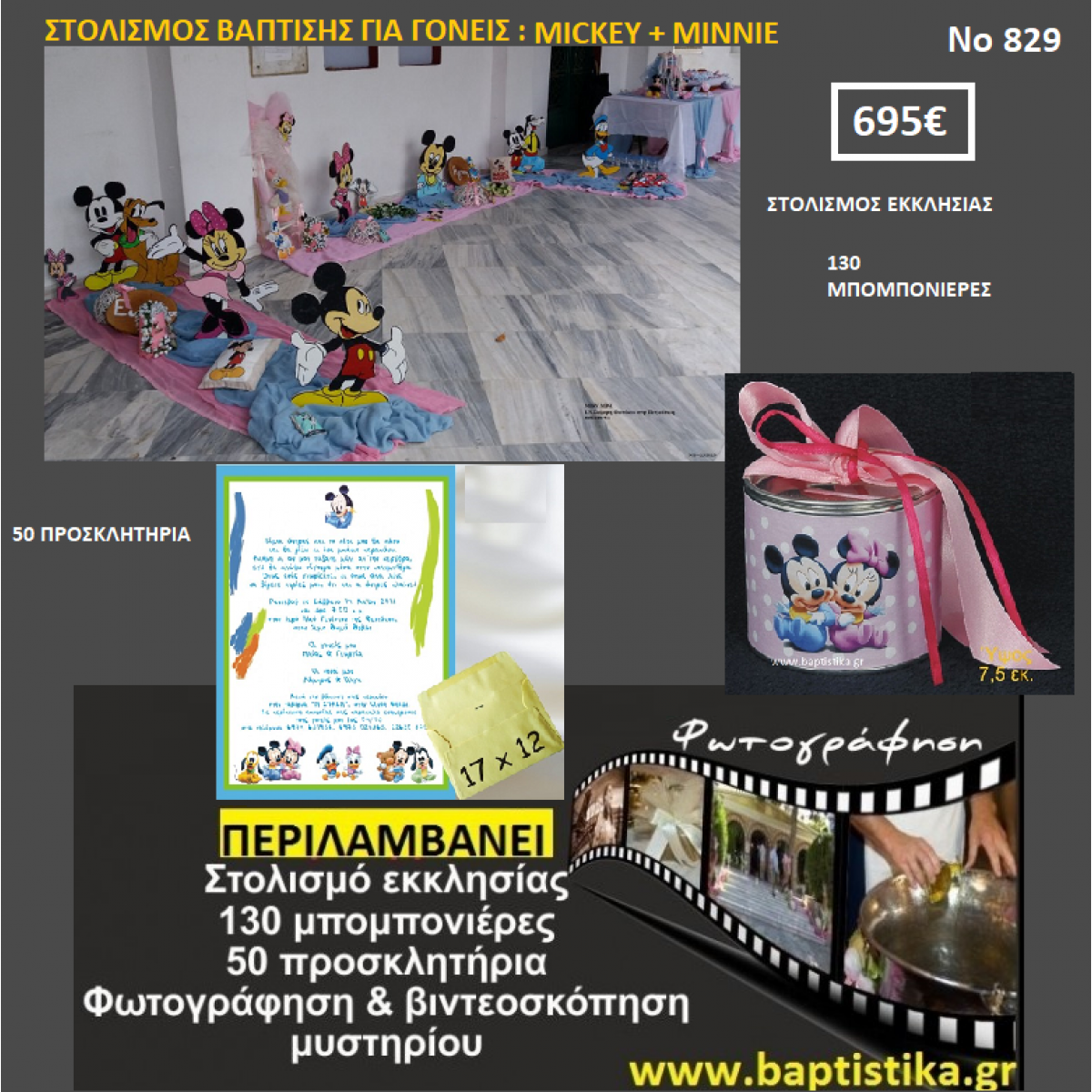MICKEY + MINNIE ΠΑΚΕΤΟ ΒΑΠΤΙΣΗΣ (130 ΜΠΟΜΠΟΝΙΕΡΕΣ,50 ΠΡΟΣΚΛΗΤΗΡΙΑ,ΦΩΤΟΓΡΑΦΗΣΗ ΚΑΙ ΒΙΝΤΕΟΣΚΟΠΗΣΗ) Νο 829