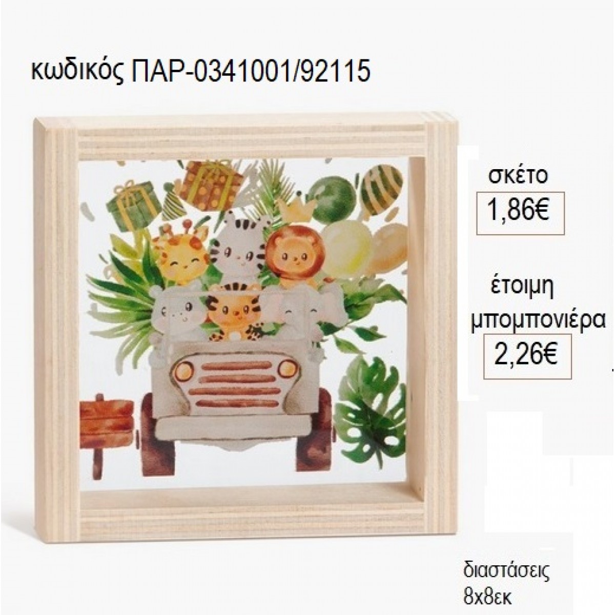 SAFARI ΞΥΛΙΝΟ ΚΑΔΡΑΚΙ ΜΕ PLEXIGLASS 8X8ΕΚ για μπομπονιέρες γούρι δώρο ΠΑΡ-0341001/92115 1.86€!!!