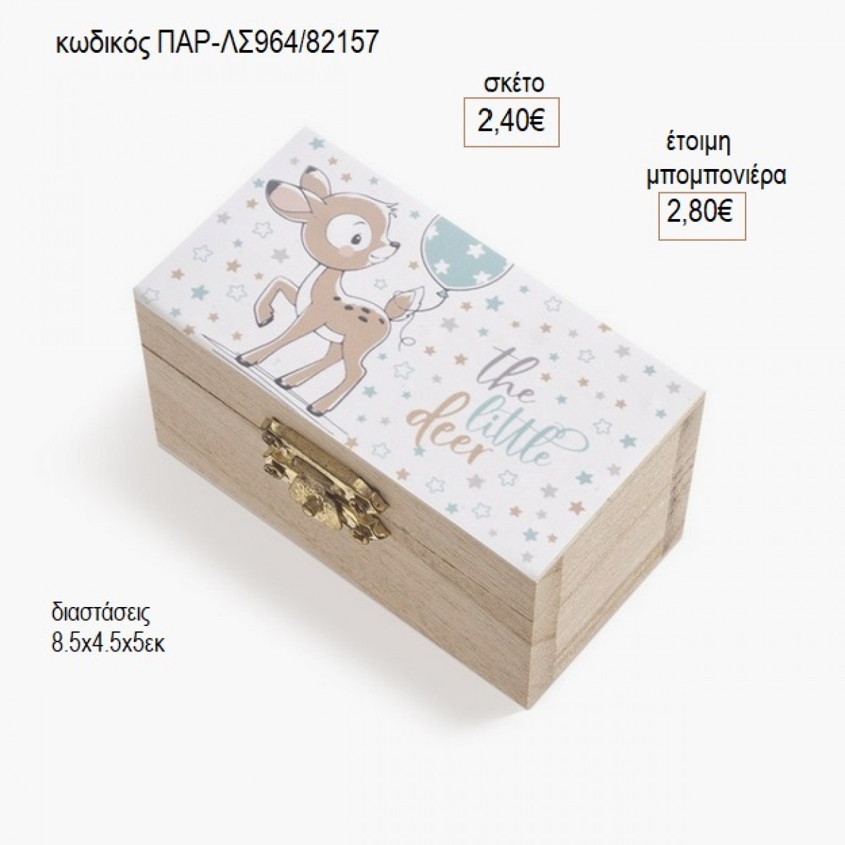 ΕΛΑΦΙ ΑΥΤΟΚΟΛΛΗΤΟ ΣΕ ΞΥΛΙΝΟ ΚΟΥΤΙ ΣΕΝΤΟΥΚΙ για μπομπονιέρες γούρι δώρο ΠΑΡ-ΛΣ964/82157 2.40€!!!