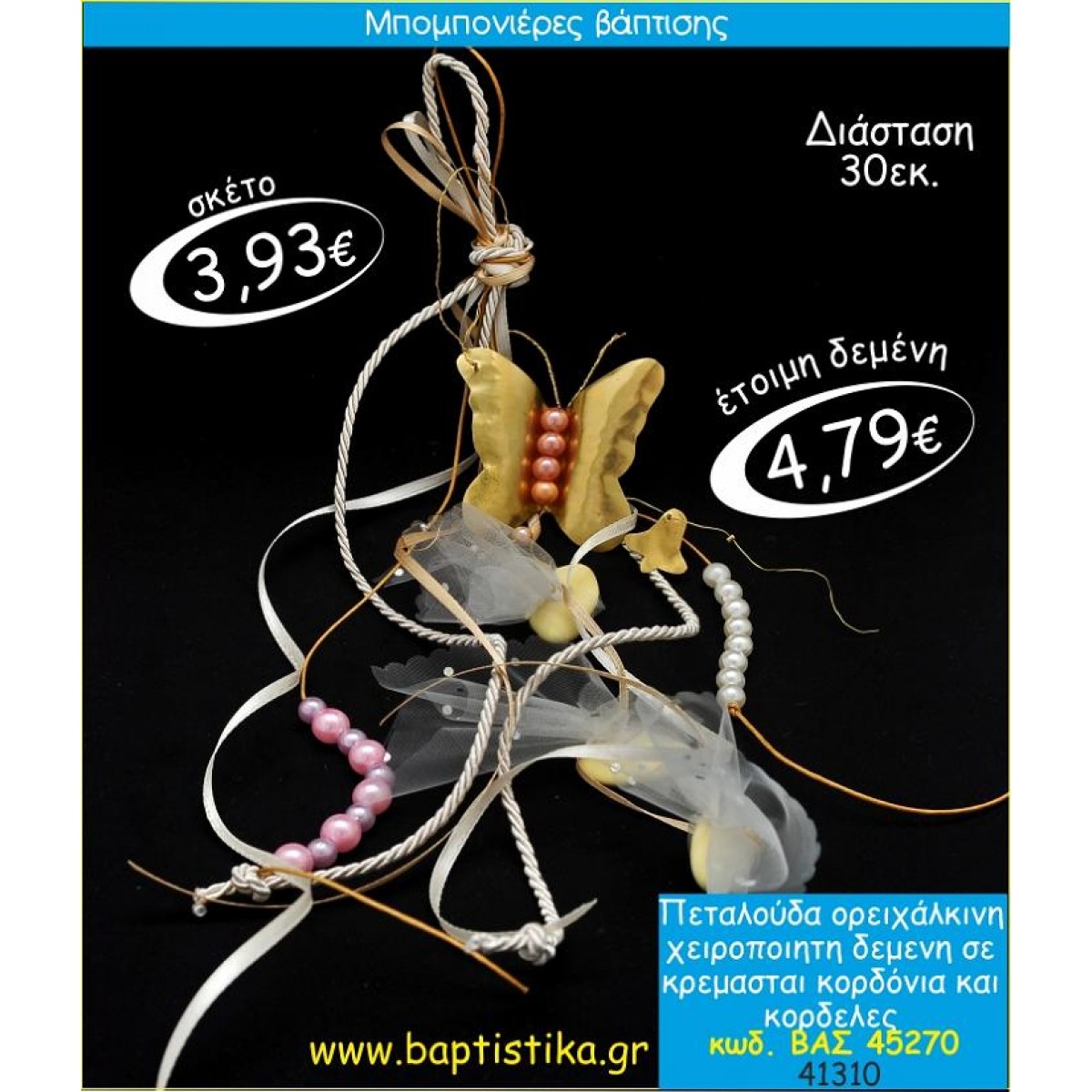 ΠΕΤΑΛΟΥΔΑ ΟΡΕΙΧΑΛΚΙΝΗ ΜΕ ΚΡΕΜΑΣΤΟ ΔΕΣΙΜΟ ΜΠΟΜΠΟΝΙΕΡΑ ΒΑΠΤΙΣΗΣ ΒΑΣ-45270