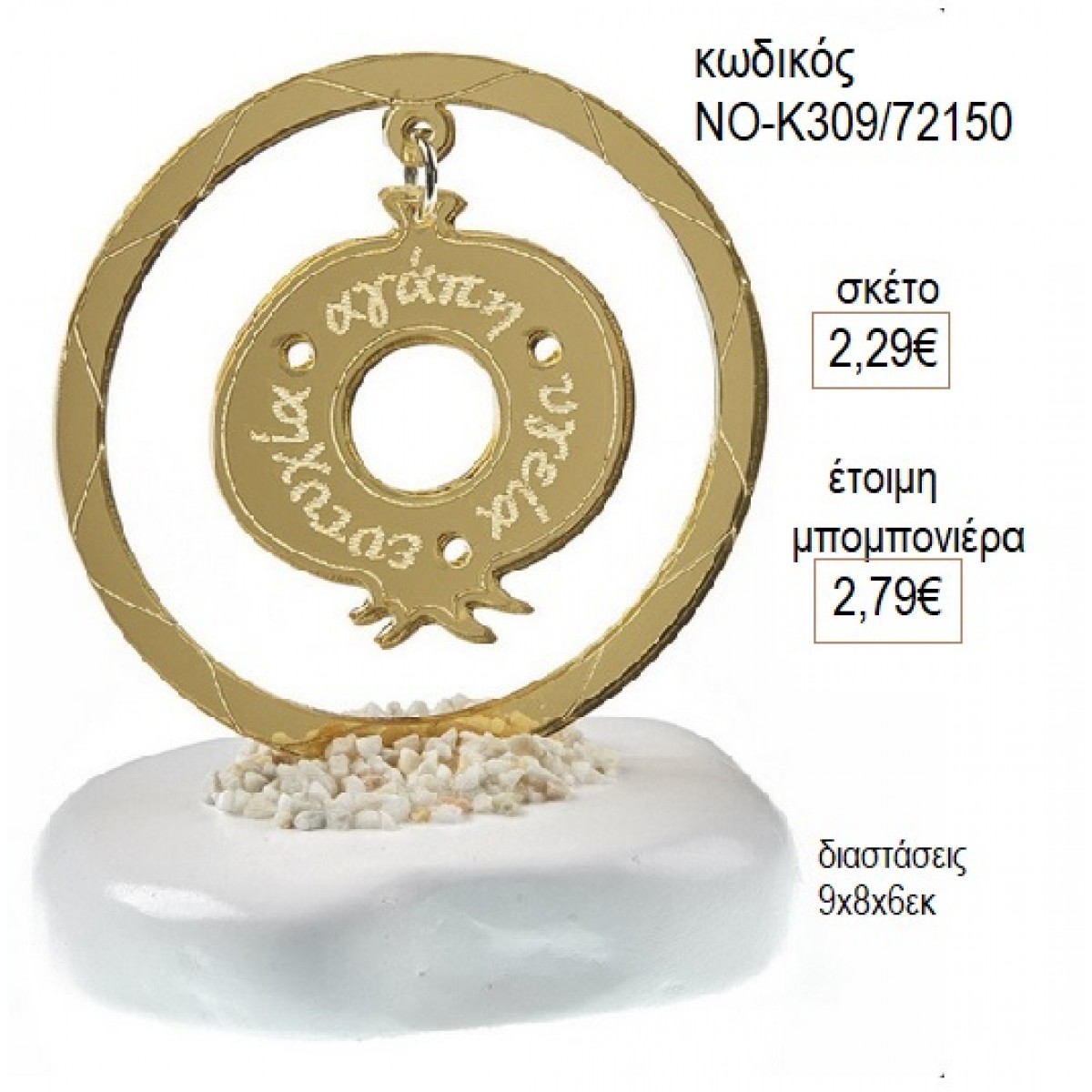 Μπορείτε να το ζητήσετε ως έτοιμη μπομπονιέρα με άριστο δέσιμο με κρυσταλιζέ τούλι 24χ24εκ.και 5 κουφέτα αμυγδάλου ή 5 κουφέτα πικολίνο (σοκολάτας) ή 15 σμάρτυς και 2 κορδέλες σατέν 0.03εκ.συνεργάτες της.