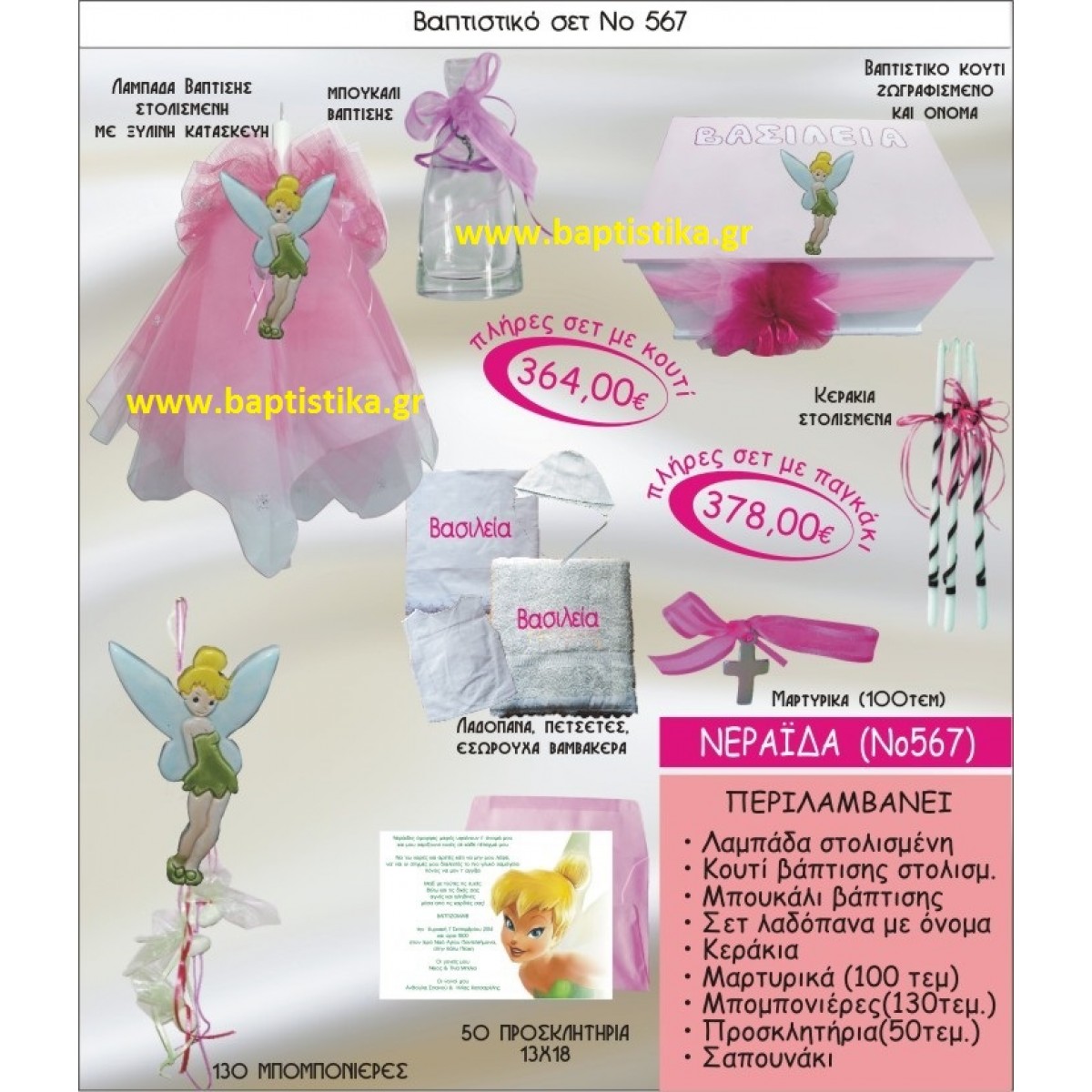 ΝΕΡΑΙΔΑ Νο567 βαπτιστικό σέτ πακέτο βάπτισης(ΒΑΠΤΙΣΤΙΚΟ ΣΕΤ ΠΛΗΡΕΣ,130 ΜΠΟΜΠΟΝΙΕΡΕΣ,50 ΠΡΟΣΚΛΗΤΗΡΙΑ) ΜΟΝΟ 364€ !!!