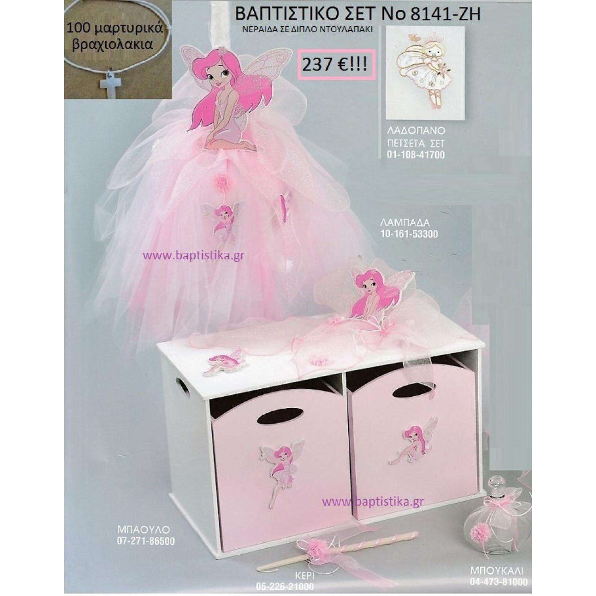 ΝΕΡΑΪΔΑ Βαπτιστικό σέτ-πακέτο σε ΔΙΠΛΟ ΝΤΟΥΛΑΠΙ ΞΥΛΙΝΟ ΝΟ-8141-ΖΗ