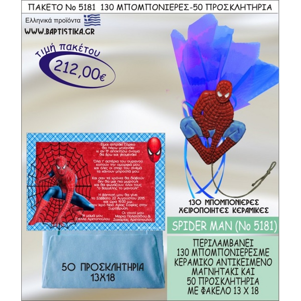 SPIDERMAN Νο5181 βαπτιστικό σέτ πακέτο βάπτισης ΜΕ 130 ΜΠΟΜΠΟΝΙΕΡΕΣ - 50 ΠΡΟΣΚΛΗΤΗΡΙΑ ΜΟΝΟ 212€ !!!