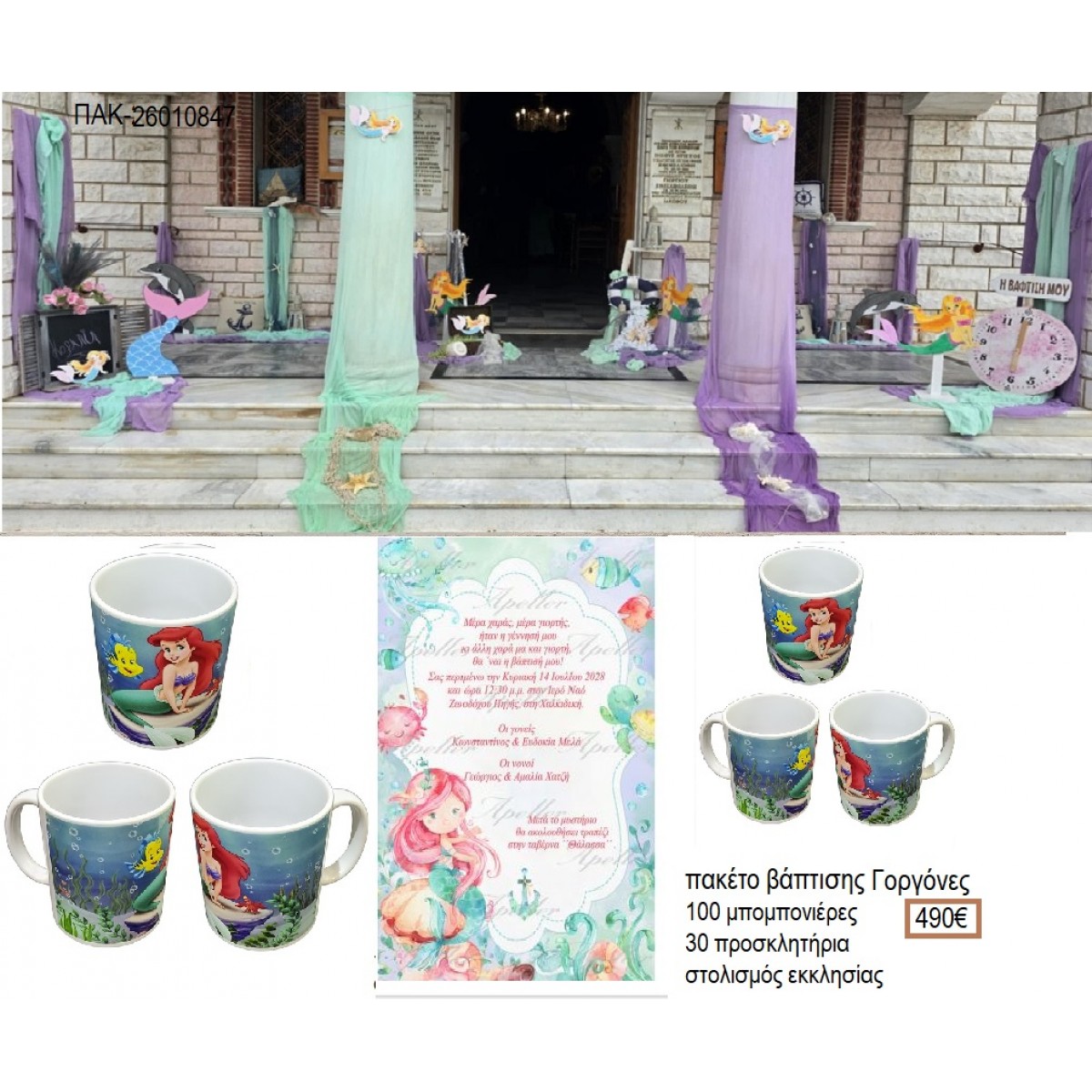 ΓΟΡΓΟΝΕΣ πακέτο βάπτισης 100 μπομπονιέρες 30 προσκλητήρια στολισμός εκκλησίας φωτογράφιση βιντεοσκόπηση ΠΑΚ-26010846 870.00€!!!