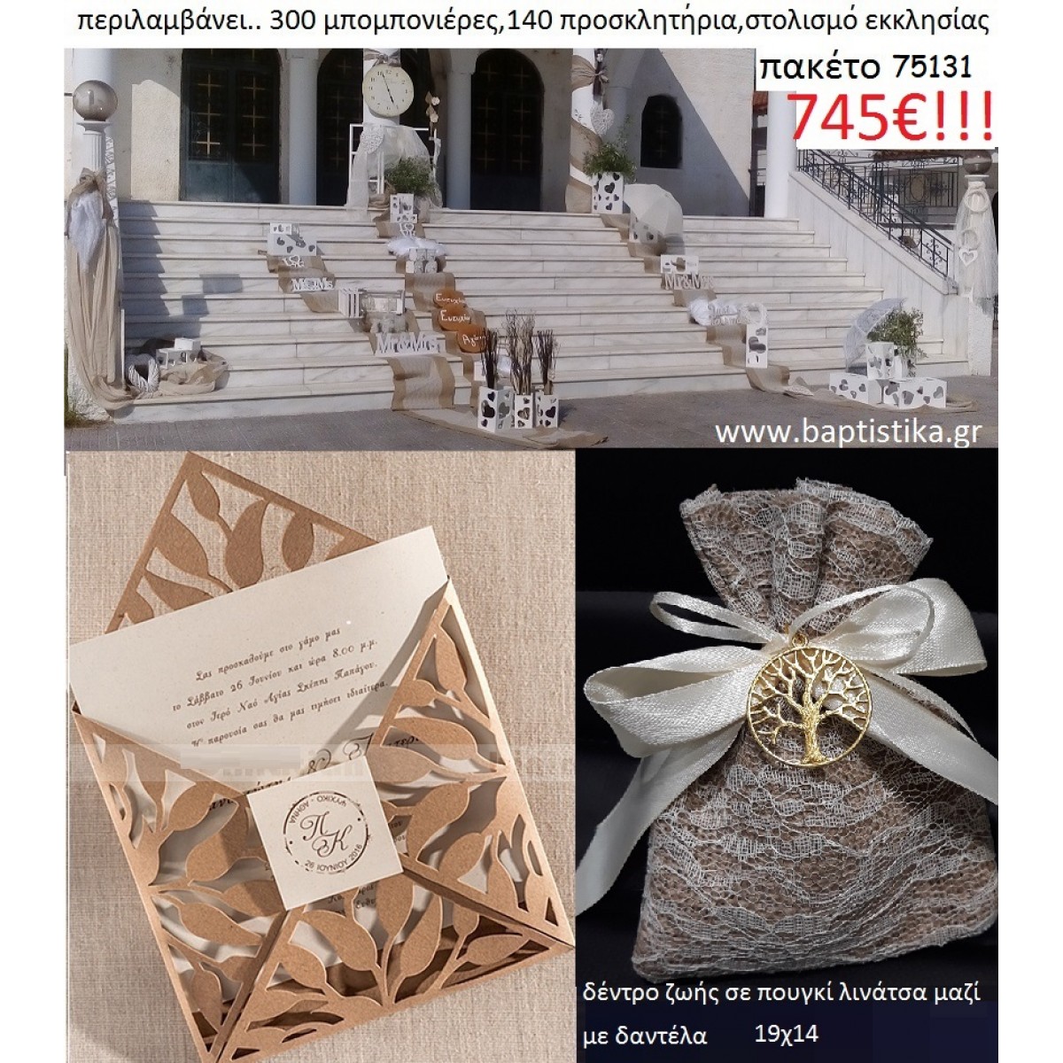 ΠΑΚΕΤΟ ΓΑΜΟΥ (300  μπομπονιέρες με πουγκί,140 προσκλητήρια και στολισμό εκκλησίας) Νο 75131