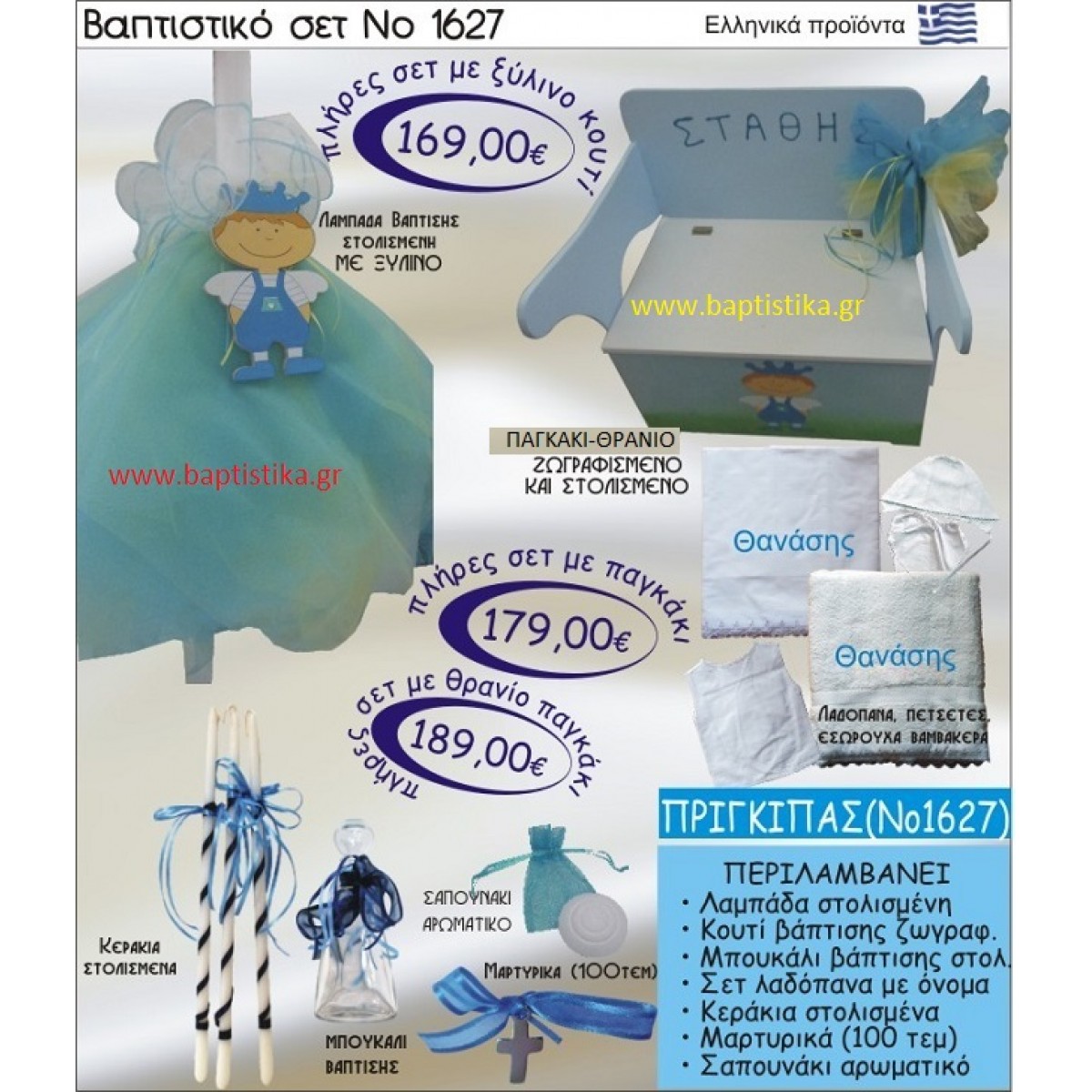ΠΡΙΓΚΗΠΑΣ Βαπτιστικό σέτ-πακέτο σε ΠΑΓΚΑΚΙ ΘΡΑΝΙΟ ΝΟ-1627