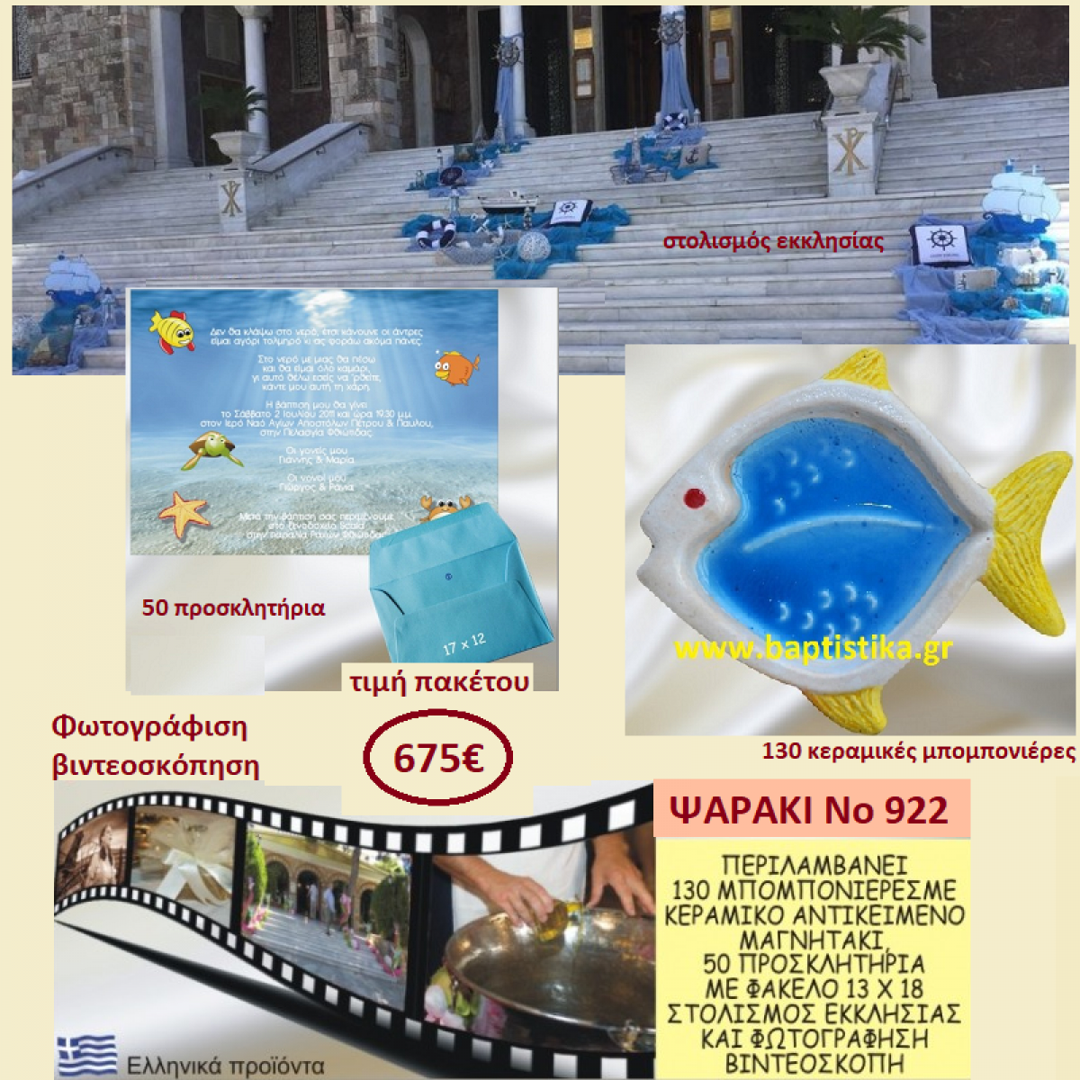 ΨΑΡΑΚΙ ΠΑΚΕΤΟ ΒΑΠΤΙΣΗΣ (130 ΜΠΟΜΠΟΝΙΕΡΕΣ,50 ΠΡΟΣΚΛΗΤΗΡΙΑ,ΦΩΤΟΓΡΑΦΙΣΗ ΚΑΙ ΒΙΝΤΕΟΣΚΟΠΗΣΗ) Νο 922