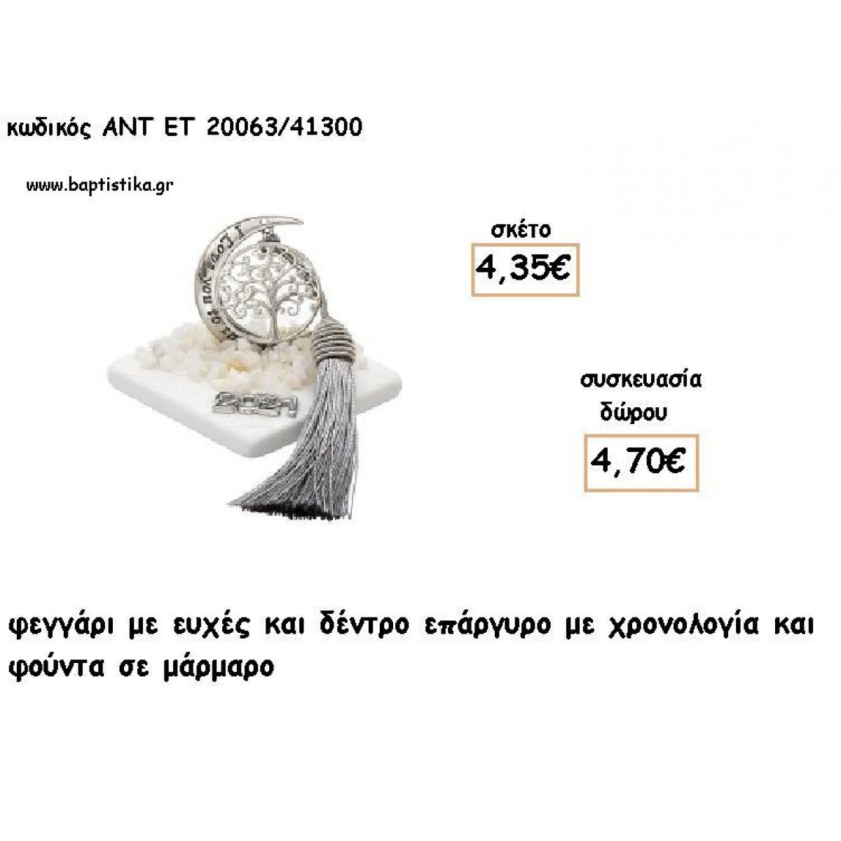 ΦΕΓΓΑΡΙ ΜΕ ΔΕΝΤΡΟ ΕΠΑΡΓΥΡΟ ΣΕ ΜΑΡΜΑΡΟ ΜΕ ΧΡΟΝΟΛΟΓΙΑ ΚΑΙ ΦΟΥΝΤΑ για γούρι - δώρο ΑΝΤ-ΕΤ 20063/41300 4.70€!!!!