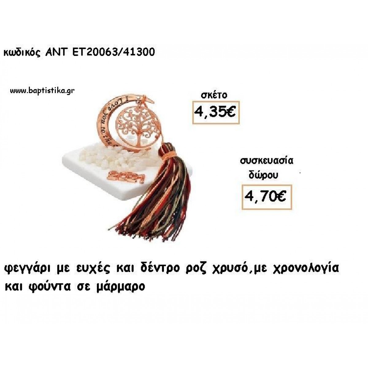 ΦΕΓΓΑΡΙ ΜΕ ΔΕΝΤΡΟ ΡΟΖ ΧΡΥΣΟ ΣΕ ΜΑΡΜΑΡΟ ΜΕ ΧΡΟΝΟΛΟΓΙΑ ΚΑΙ ΦΟΥΝΤΑ για γούρι - δώρο ΑΝΤ-ΕΤ 20063/41300 4.70€!!!!