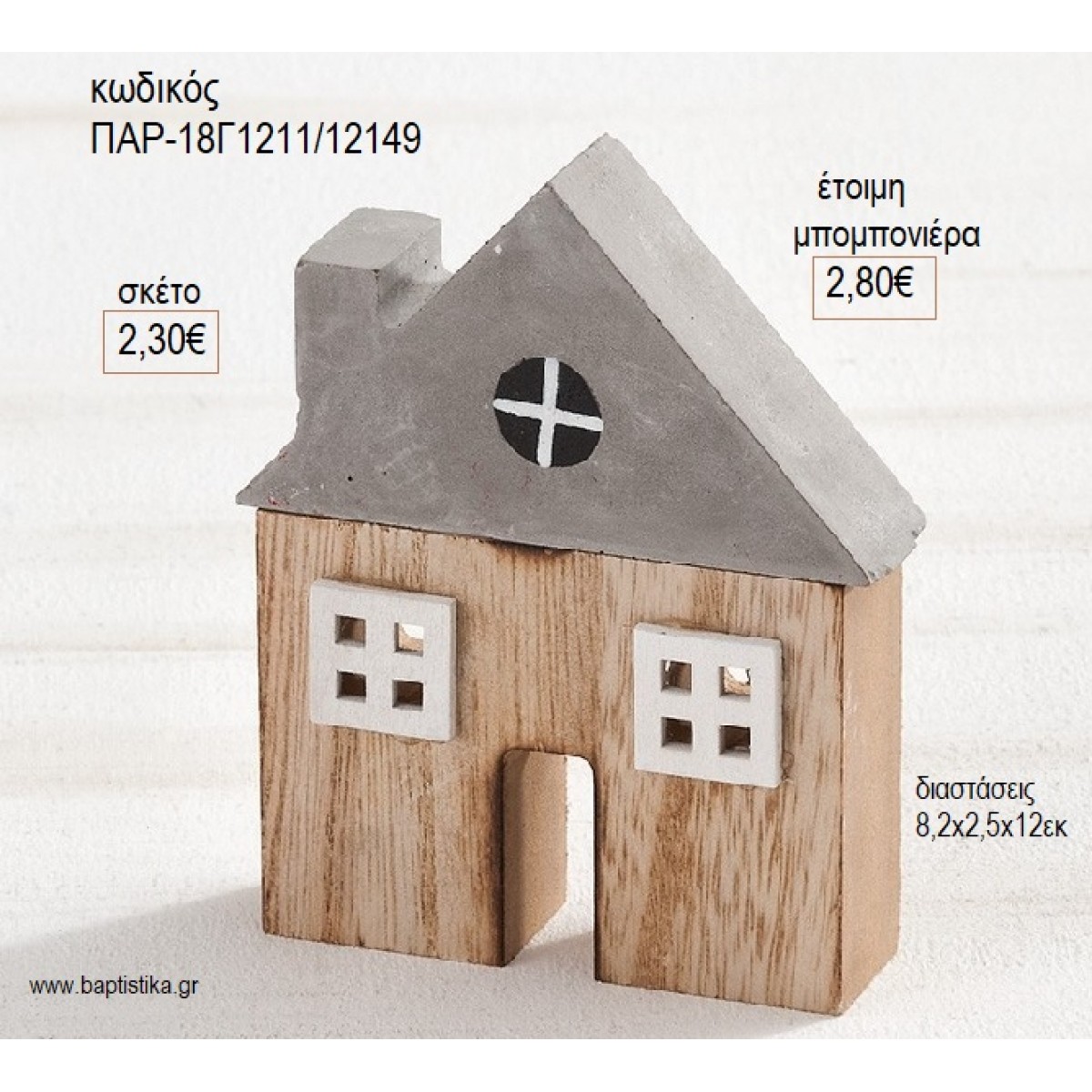 ΣΠΙΤΙ ΔΙΑΚΟΣΜΗΤΙΚΟ ΑΠΟ ΤΣΙΜΕΝΤΟ ΚΑΙ ΞΥΛΟ για μπομπονιέρες γούρι δώρο ΠΑΡ-18Γ1211/12149 2.30€!!!