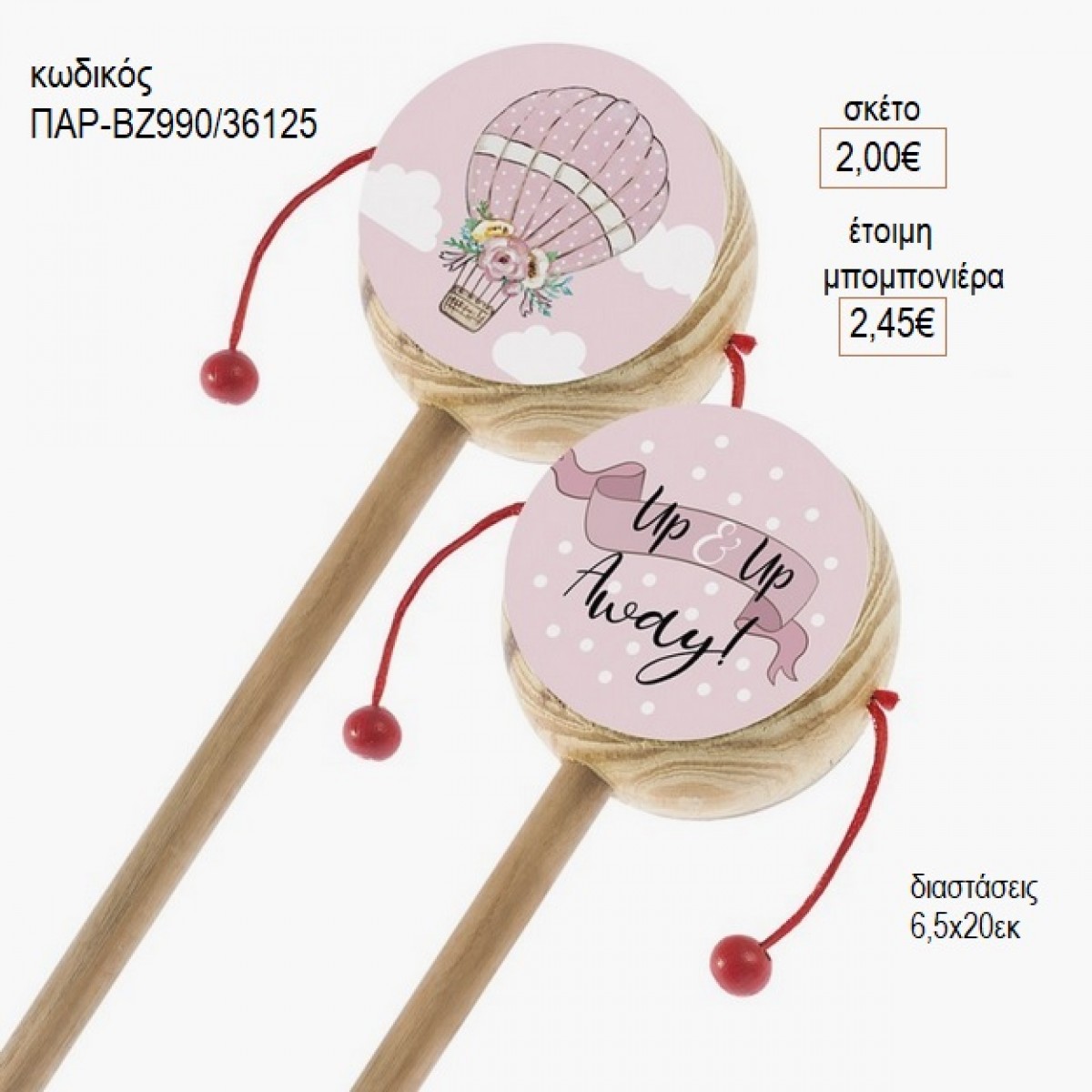 ΑΕΡΟΣΤΑΤΟ ΡΟΖ ΑΥΤΟΚΟΛΛΗΤΟ ΔΥΟ ΟΨΕΩΝ ΣΕ ΞΥΛΙΝΟ ΤΥΜΠΑΝΑΚΙ για μπομπονιέρες γούρι δώρο ΠΑΡ-ΒΖ990/26125 2.00€!!!