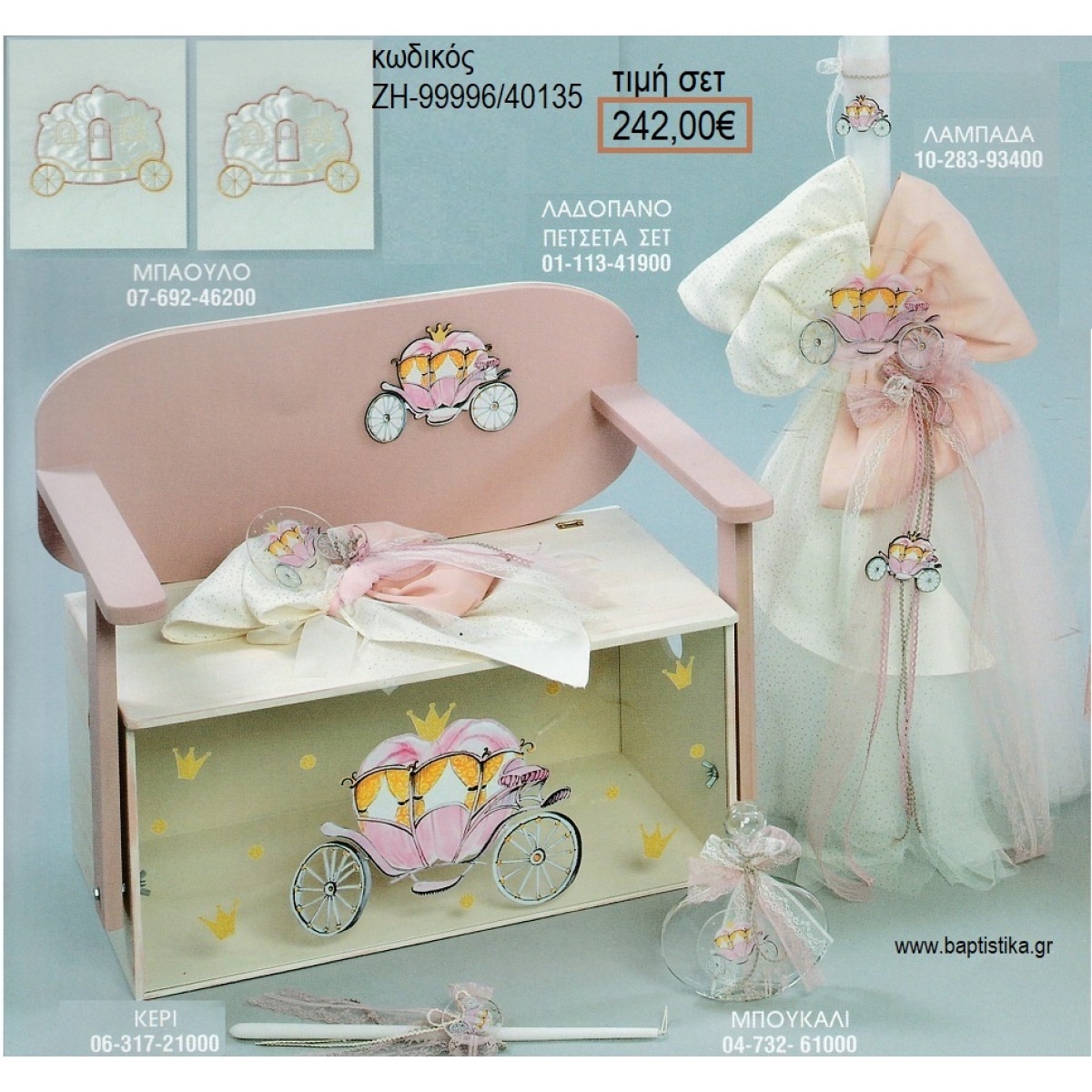 ΑΜΑΞΑ βαπτιστικό σετ με ΞΥΛΙΝΟ ΠΑΓΚΑΚΙ ΖΗ-99996/40135 242.00€!!!