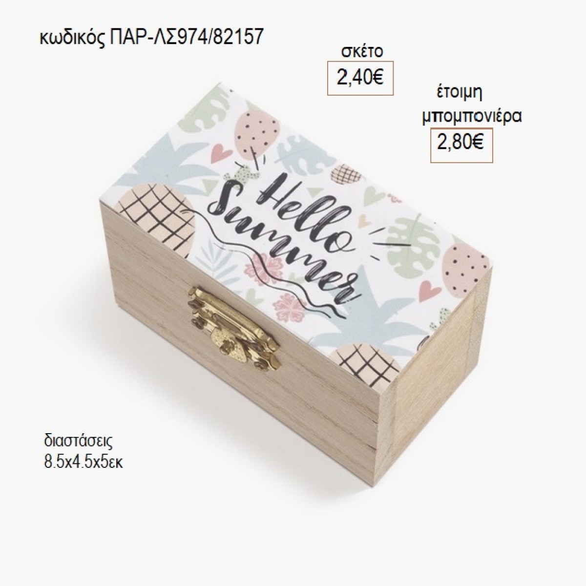 HELLO SUMMER ΑΥΤΟΚΟΛΛΗΤΟ ΣΕ ΞΥΛΙΝΟ ΚΟΥΤΙ ΣΕΝΤΟΥΚΙ για μπομπονιέρες γούρι δώρο ΠΑΡ-ΛΣ974/82157 2.40€!!!